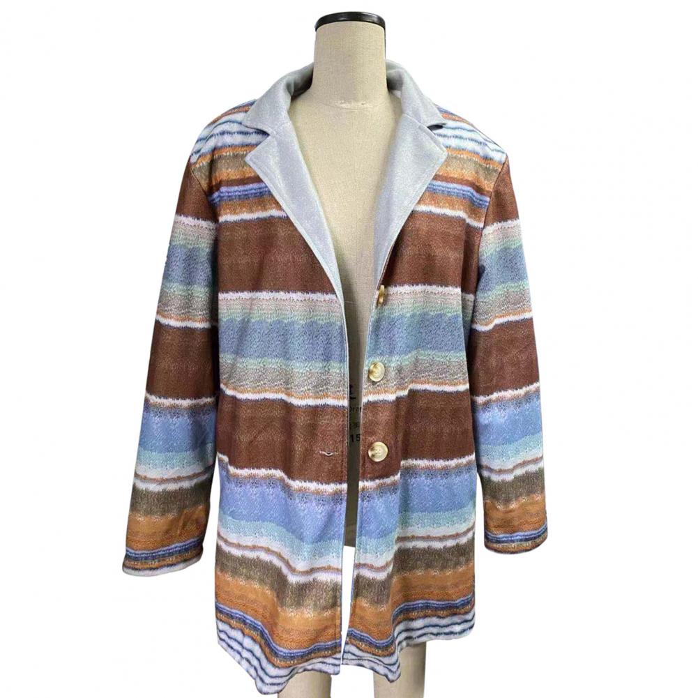 2021 стильное цветное Полосатое пальто средней длины, теплая, приятная на ощупь однобортная куртка с длинными рукавами для повседневной носки