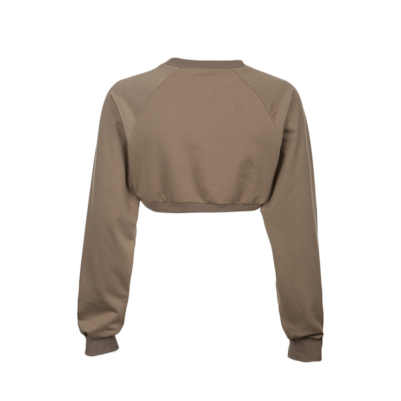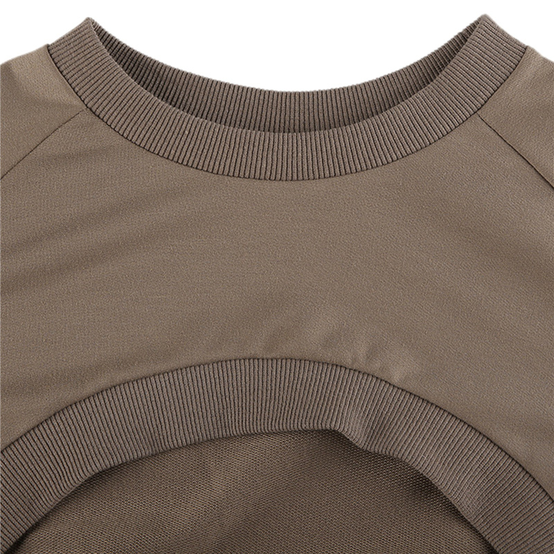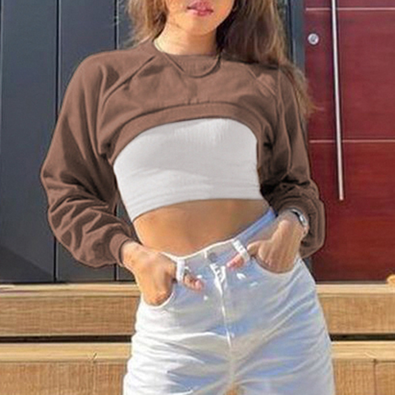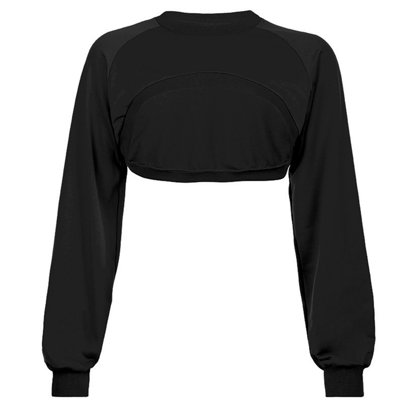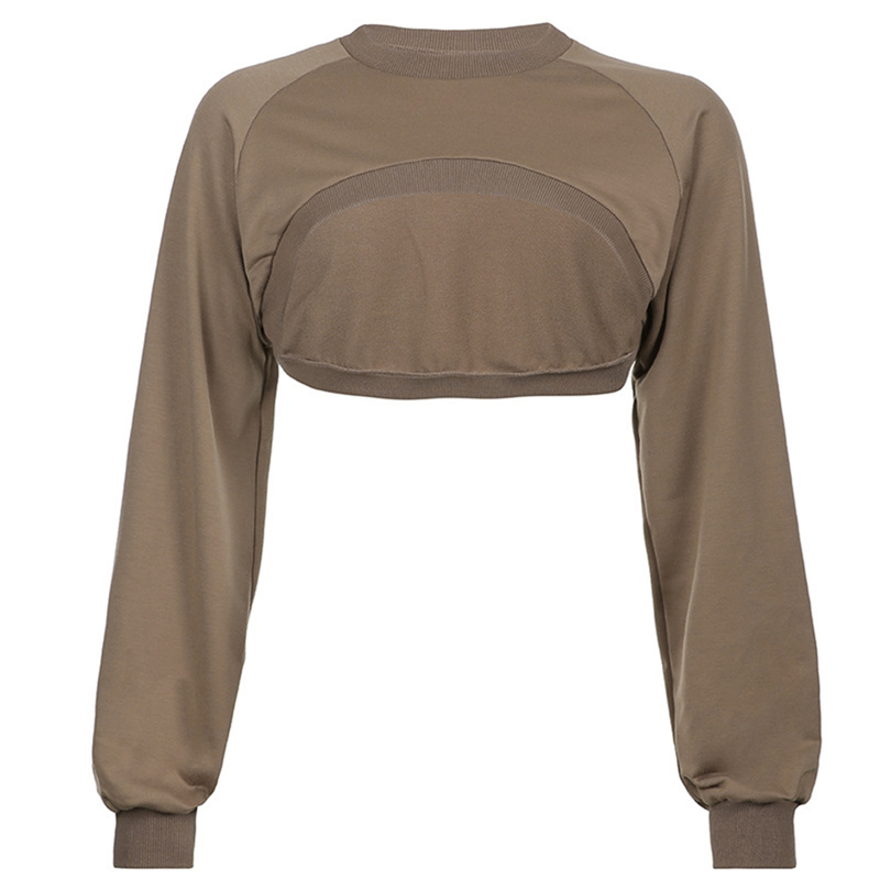 Y2K Повседневный Женский пуловер, укороченный топ, осень-весна, длинный рукав, круглый вырез, однотонный свободный свитер, уличная одежда