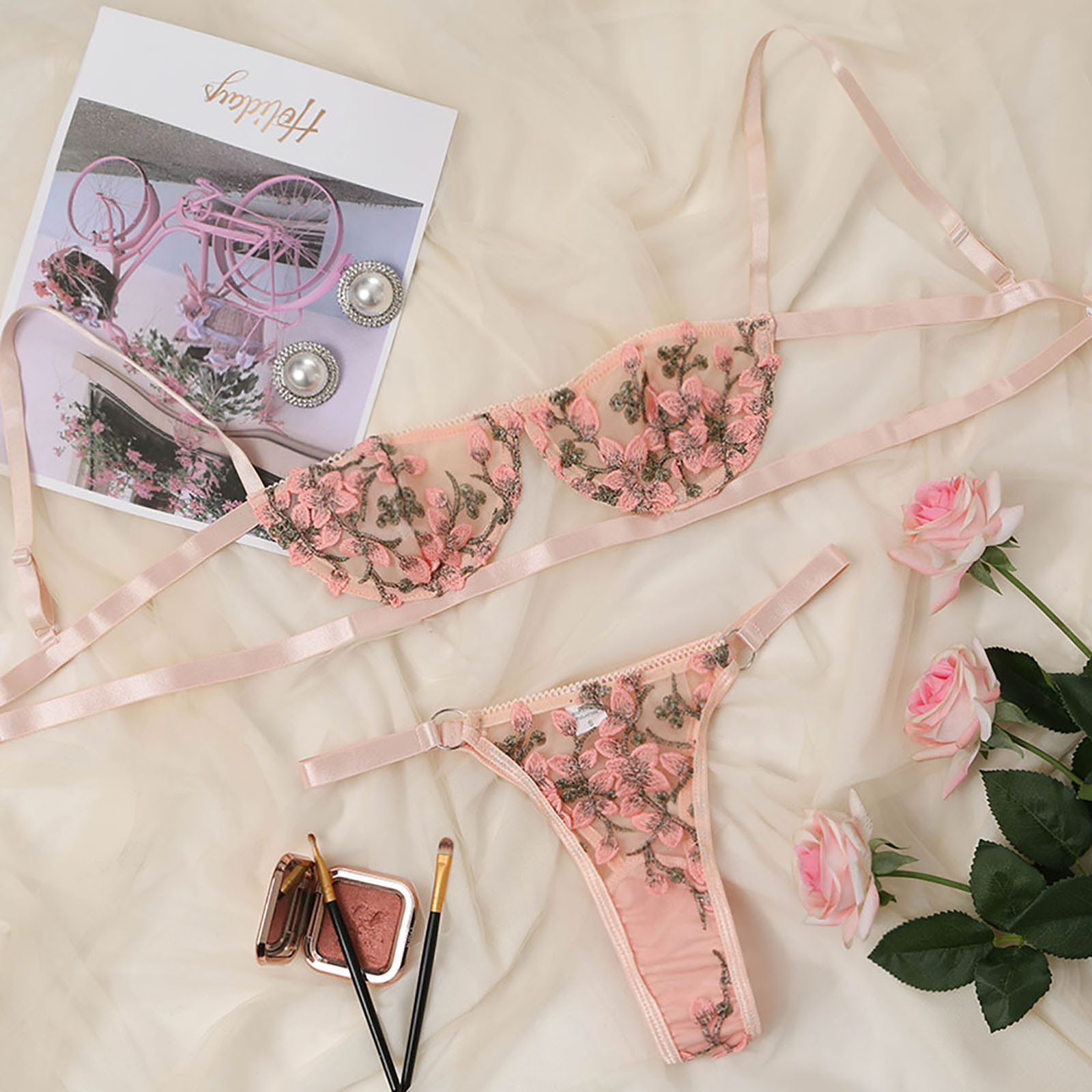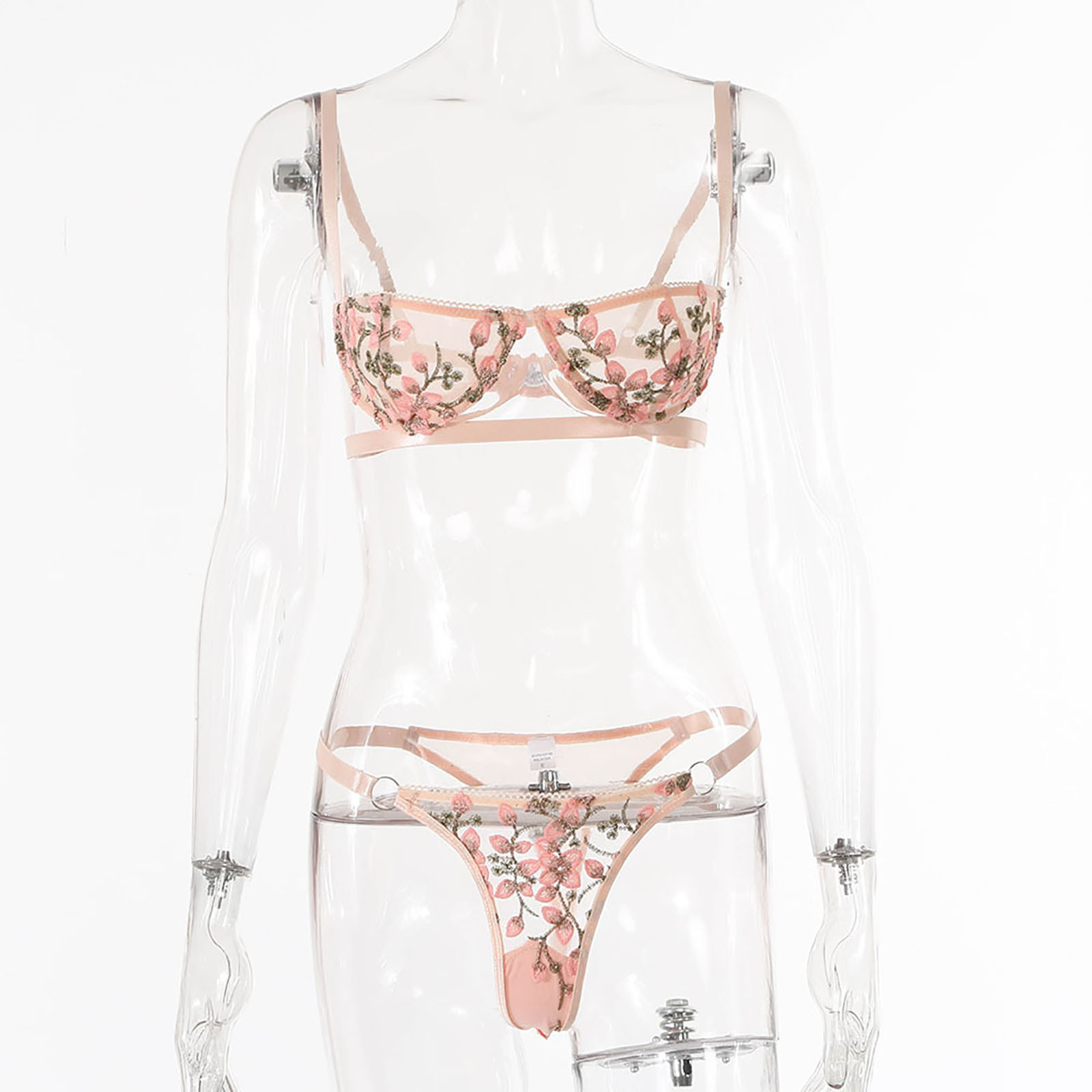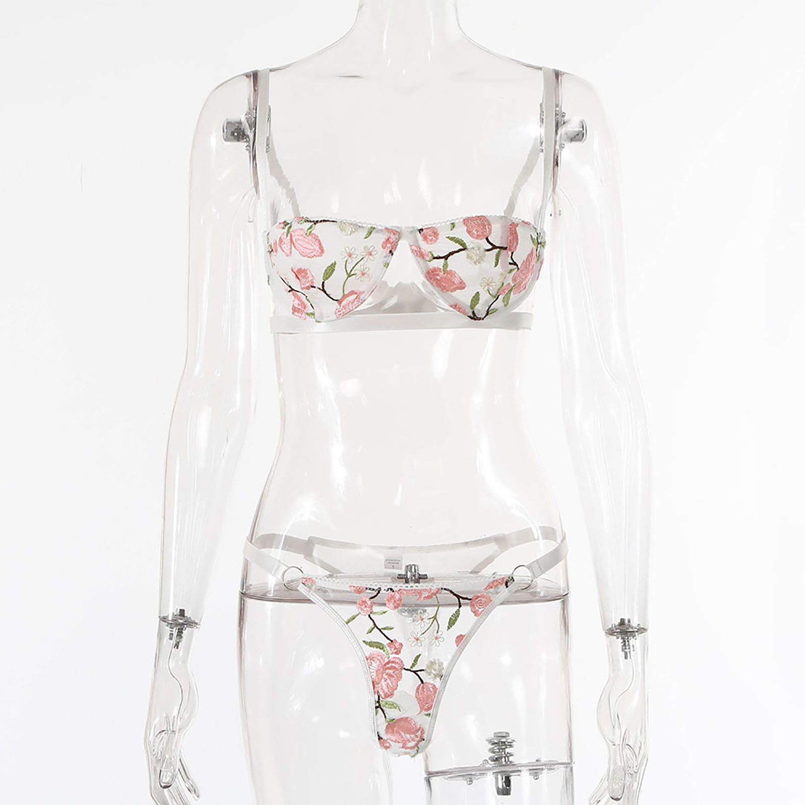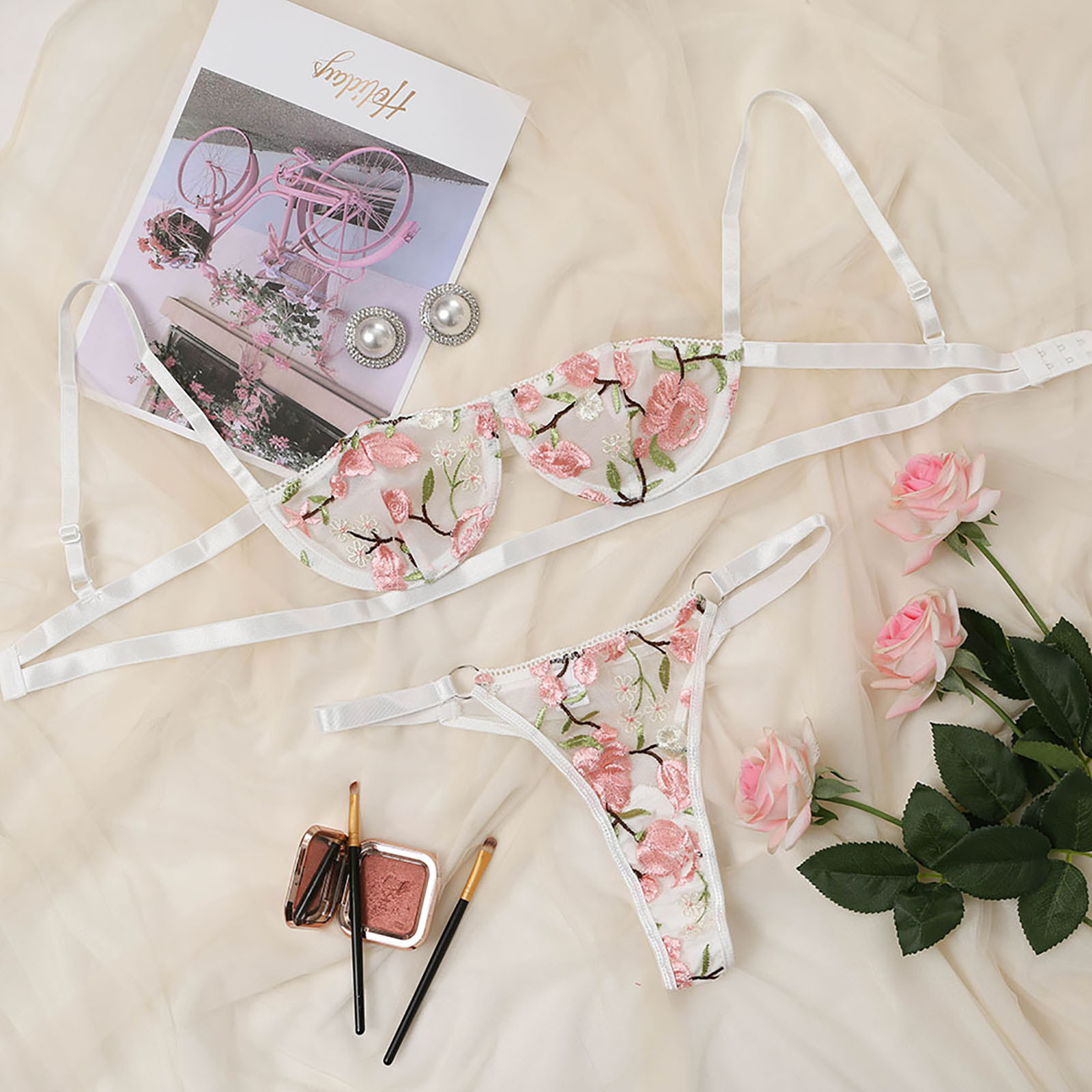 Женское сексуальное нижнее белье, Модный комплект прозрачного нижнего белья с вышивкой