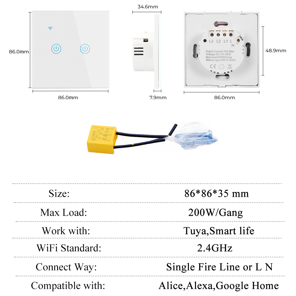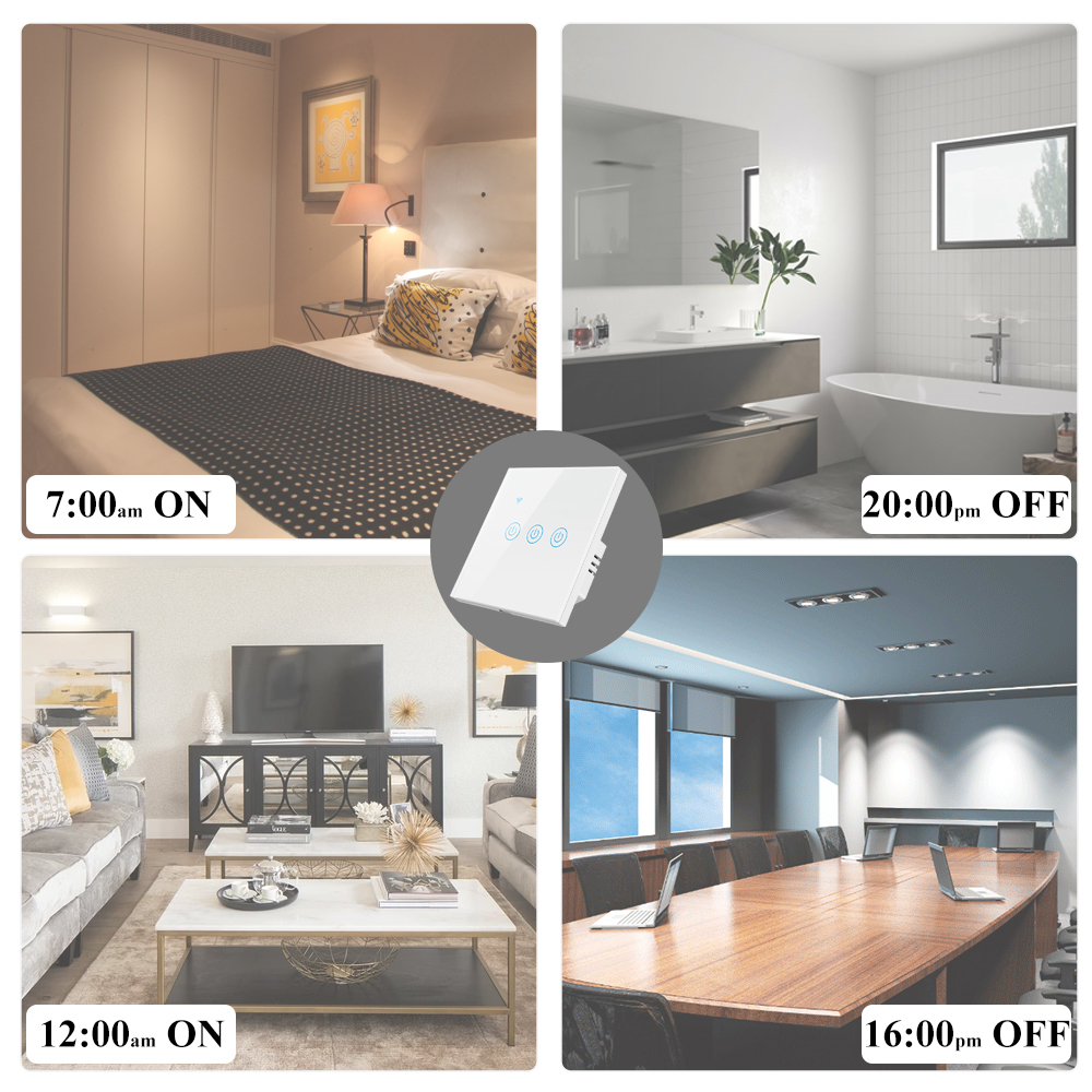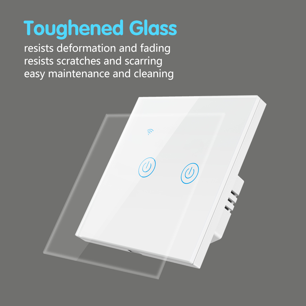 Настенный выключатель изготовлен из высококачественных материалов, таких как огнестойкая оболочка, Фосфорная бронза соединяет и передовое PC + закаленное стекло, может обеспечить защиту от огня, перегрузки для защиты вашей семьи.