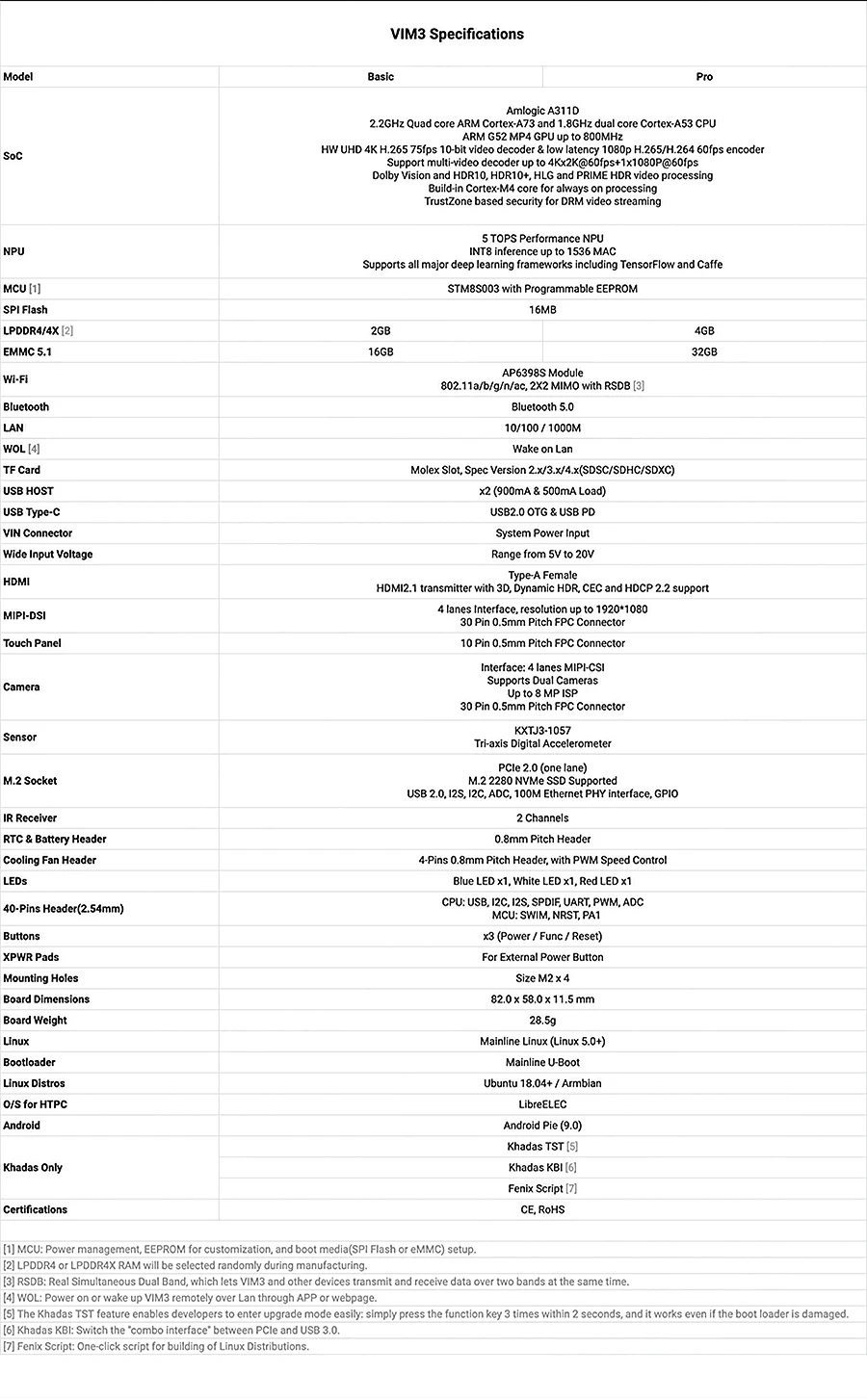 VIM3 превосходит соревнования с этими уникальными спецификациями.