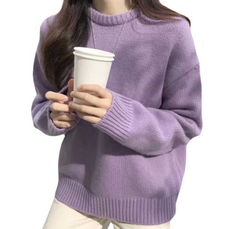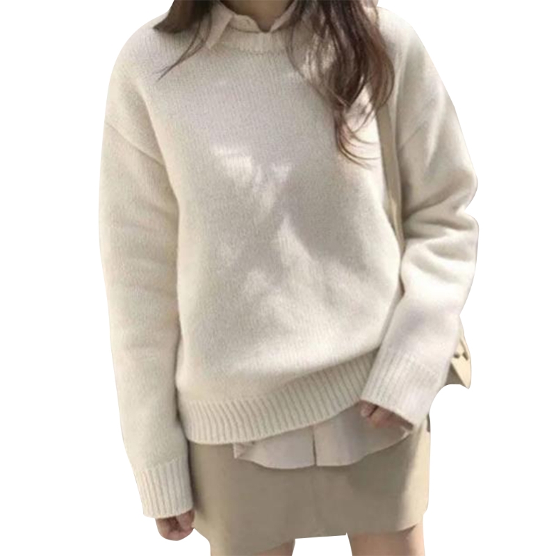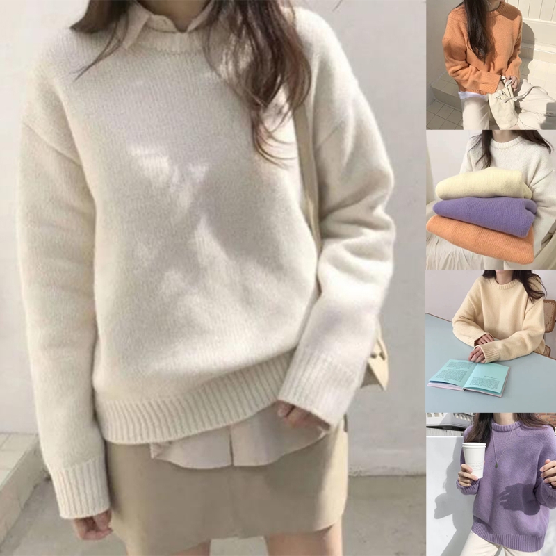 Женский плотный вязаный Топ с длинным рукавом, однотонный Свободный пуловер из искусственной шерсти