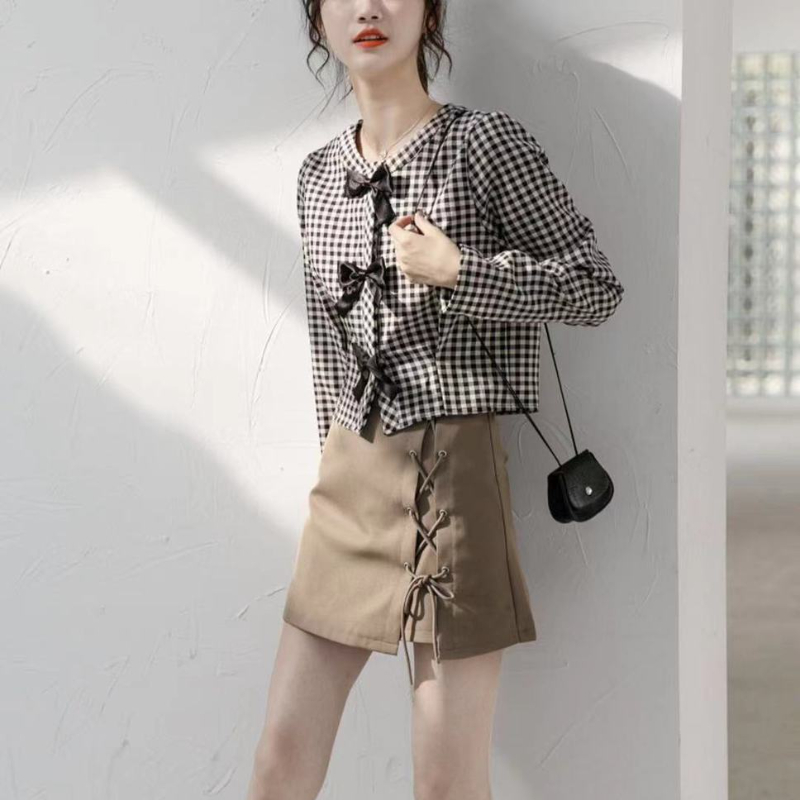 Женская рубашка в горошек голубая Элегантная блузка с оборками и длинным рукавом