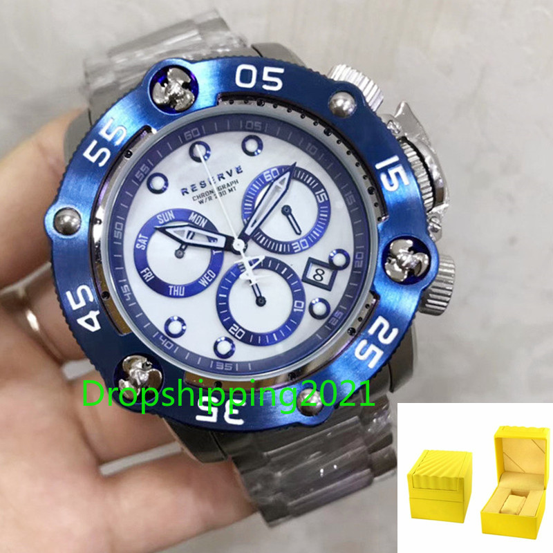 Непобедимый резерв пропеллер Мужские кварцевые часы 52,5 мм нержавеющая сталь хронограф Непобедимый Invicto Reloj De Hombre дропшиппинг