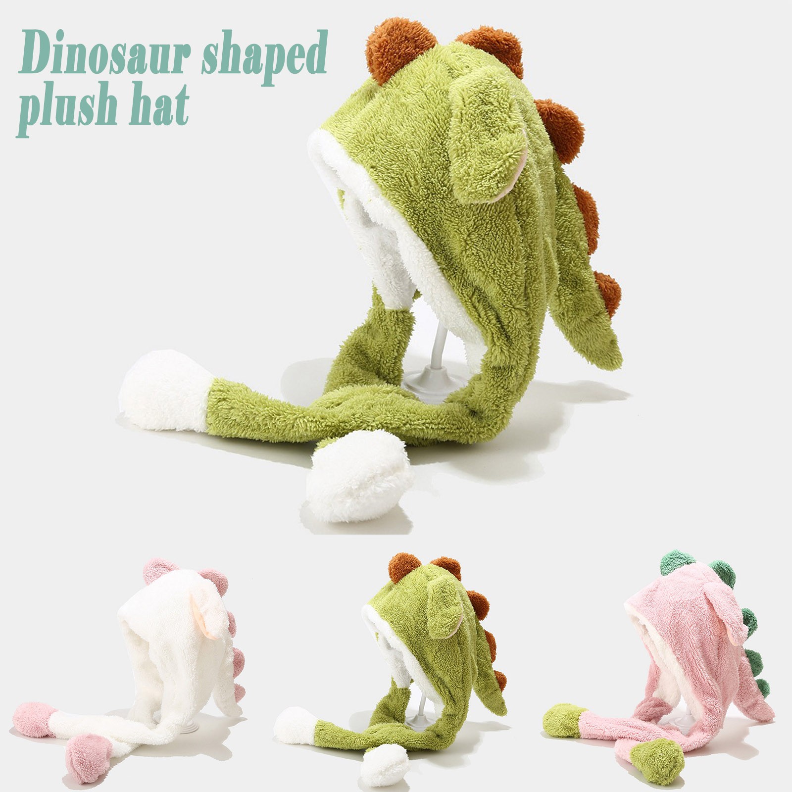 Забавная динамичная плюшевая шапка в форме динозавра с мультяшным рисунком, теплая защита ушей
