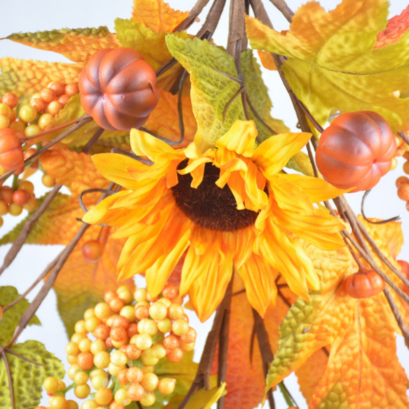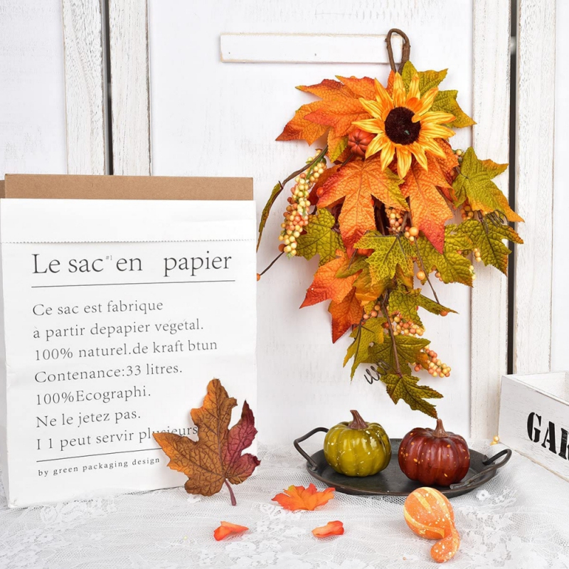 2. Искусственная Цветочная Гирлянда изысканна в изготовлении, естественная и Реалистичная, и может быть сохранена яркой круглый год. Это отличный выбор для украшения вашего дома. Классические Осенние цвета сочетаются с реалистичными пшеничными ушами, смешанными осенними листьями, подсолнухами и гибкими лозами, чтобы добавить осеннюю атмосферу в дом.