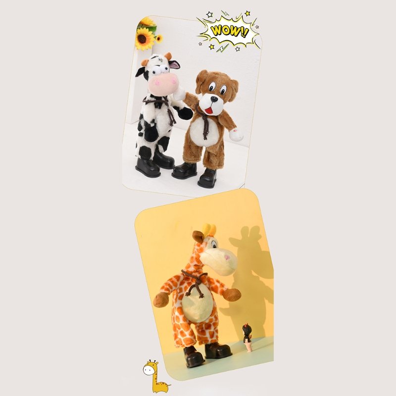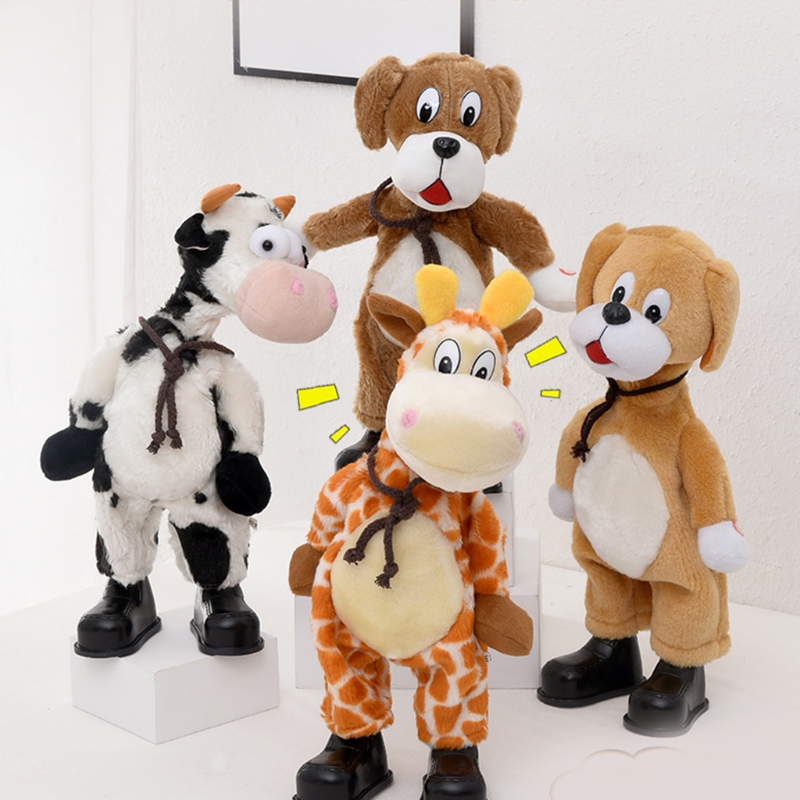 Реалистичный дизайн: мягкий дизайн шитья, чтобы сделать его реалистичным коровой/оленем/собакой и красивой формой для детей, чтобы играть, нажмите кнопку, чтобы активировать функцию танцев, игрушка начинает трясти и крутить тело с музыкой, кавайная плюшевая кукла, чтобы выпустить ежедневное давление.
