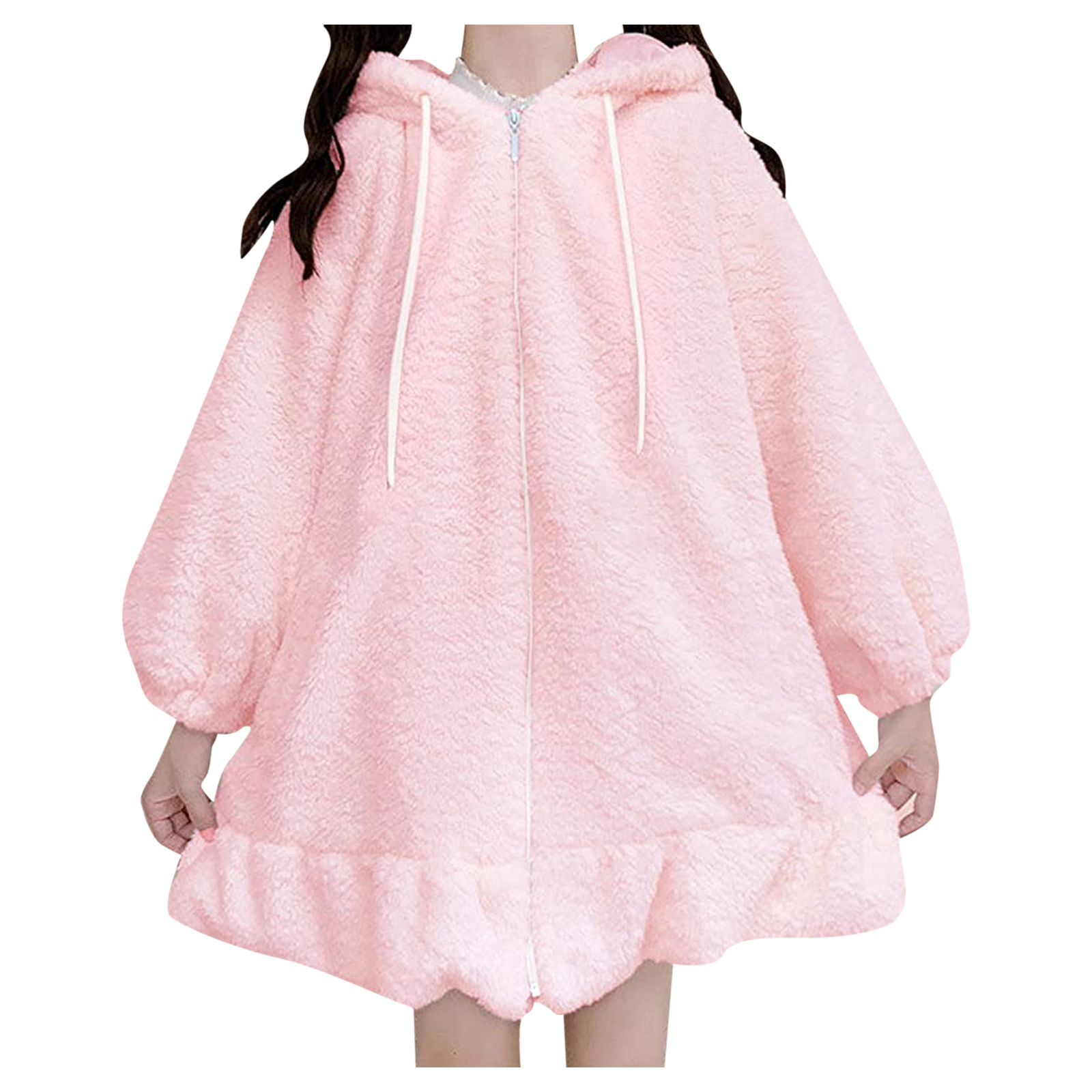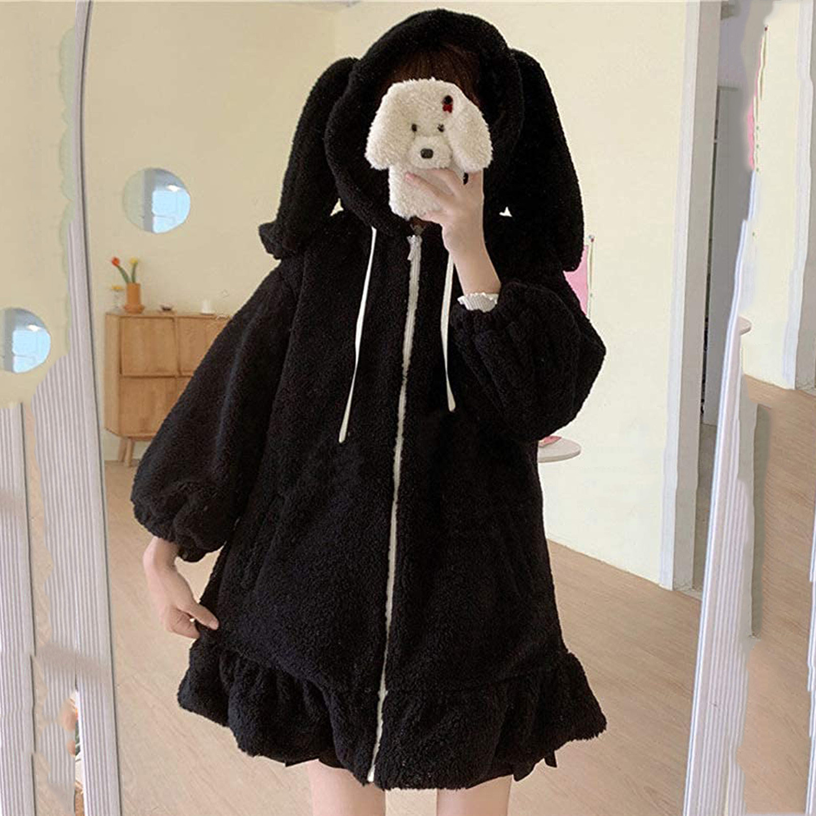 Women's Casual Fashion Solid Color Loose Bunny Long Sleeves Hoodie With Hood