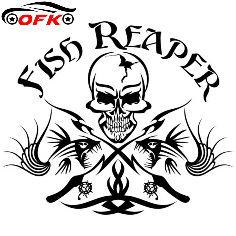 1 х OFK Fish Reaper череп для рыбалки, виниловые наклейки для автомобиля, Наклейки для декора