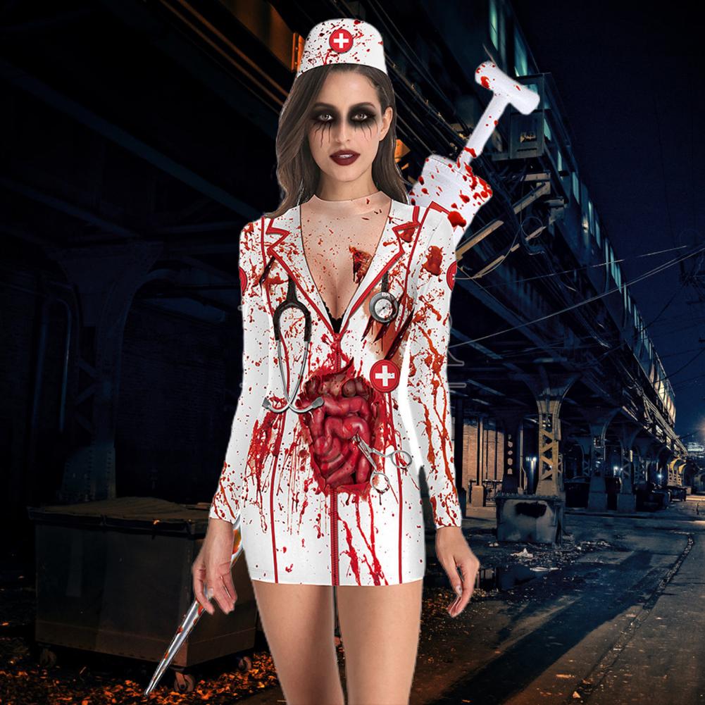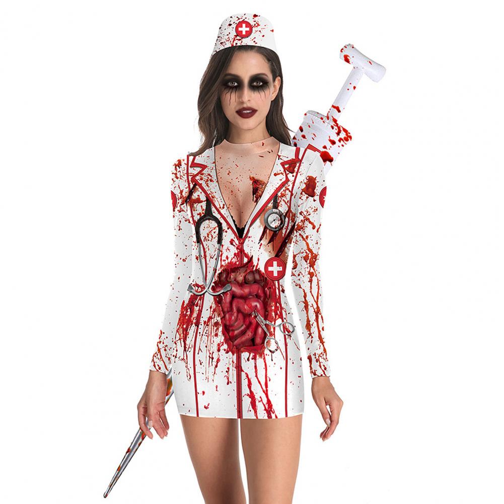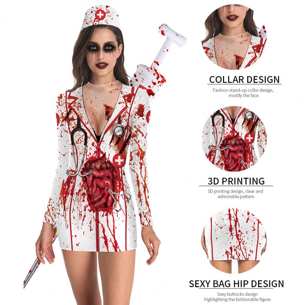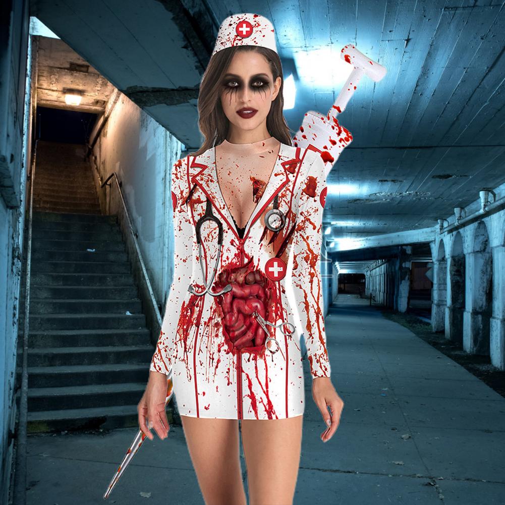 Привлекательное Сексуальное Женское Платье из полиэстера с длинным рукавом и рисунком зомби для костюмированной вечеринки