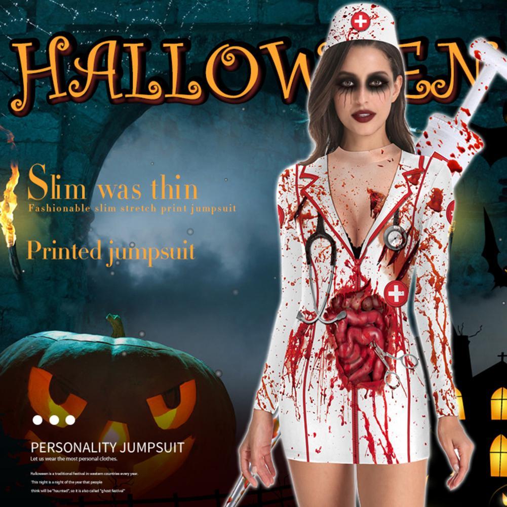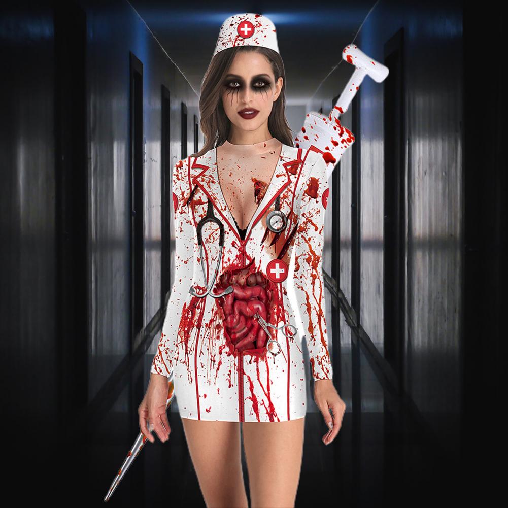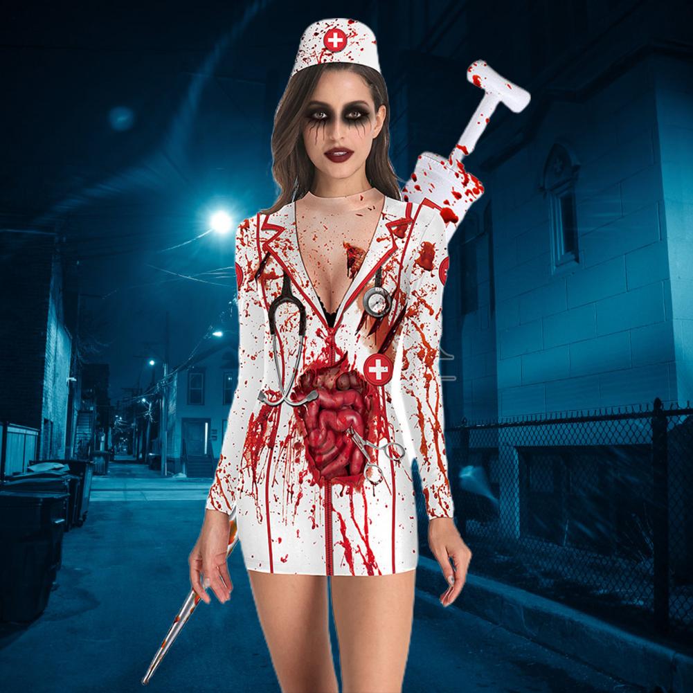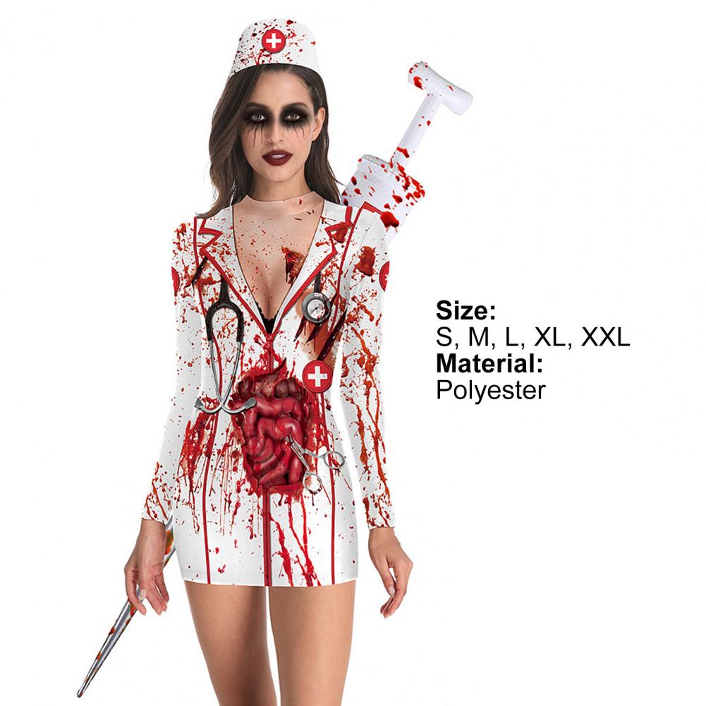 Привлекательное Сексуальное Женское Платье из полиэстера с длинным рукавом и рисунком зомби для костюмированной вечеринки