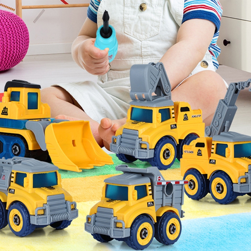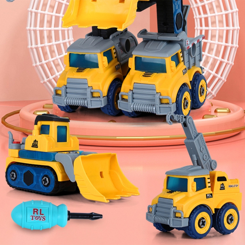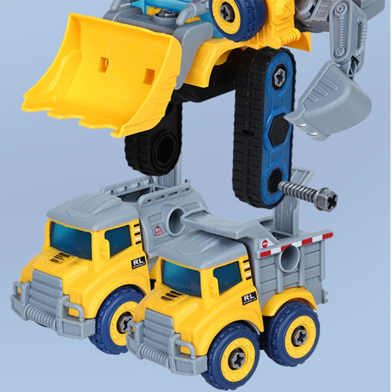 Большой робот состоит из четырех маленьких грузовиков. Каждый маленький может двигаться самостоятельно. Два рычага-краны, экскаваторы и ножки-бульдозер и миксер.