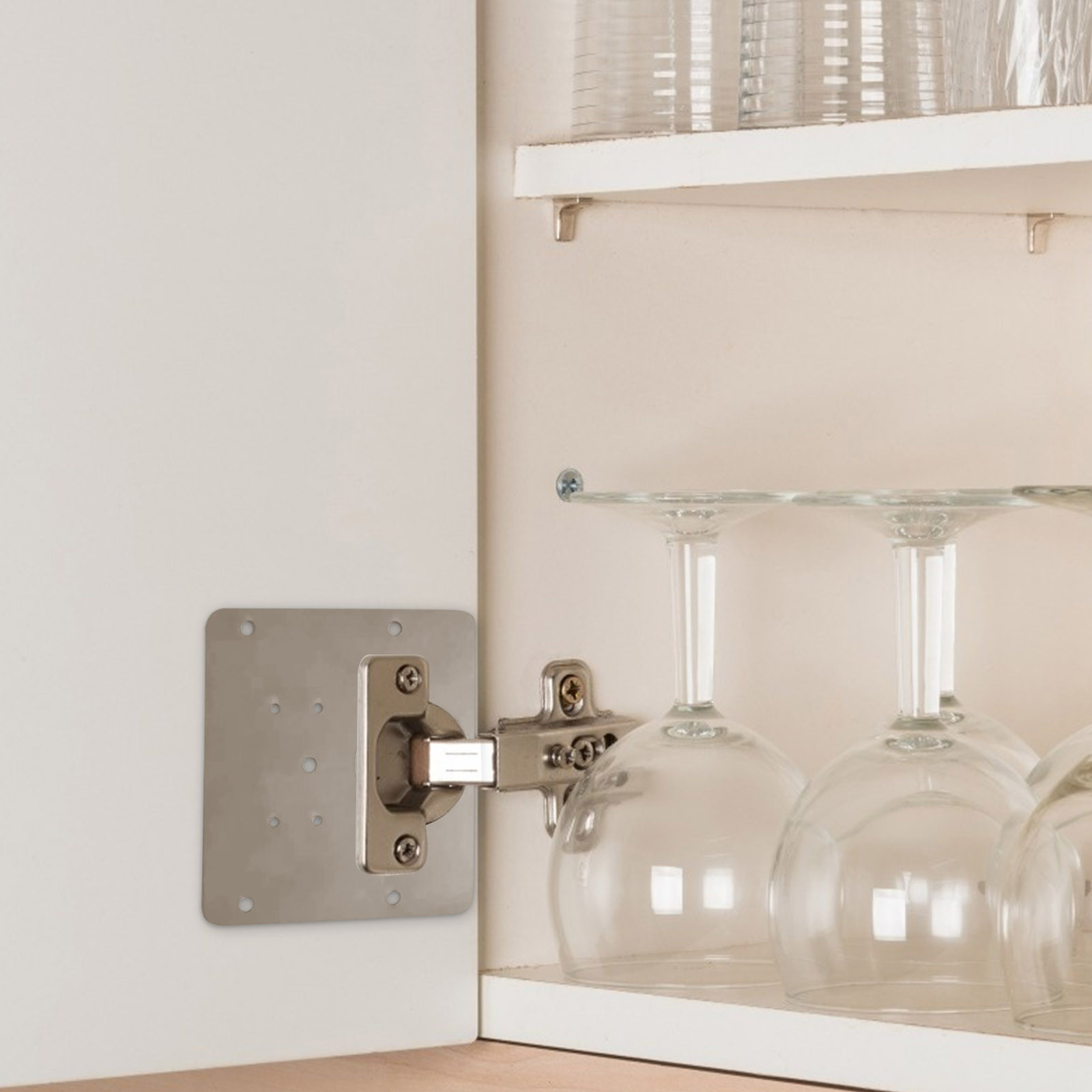 Пластина крепится к текущему шарнирному креплению, обеспечивая прочное крепление шарнира к двери, и можно использовать боковые панели.