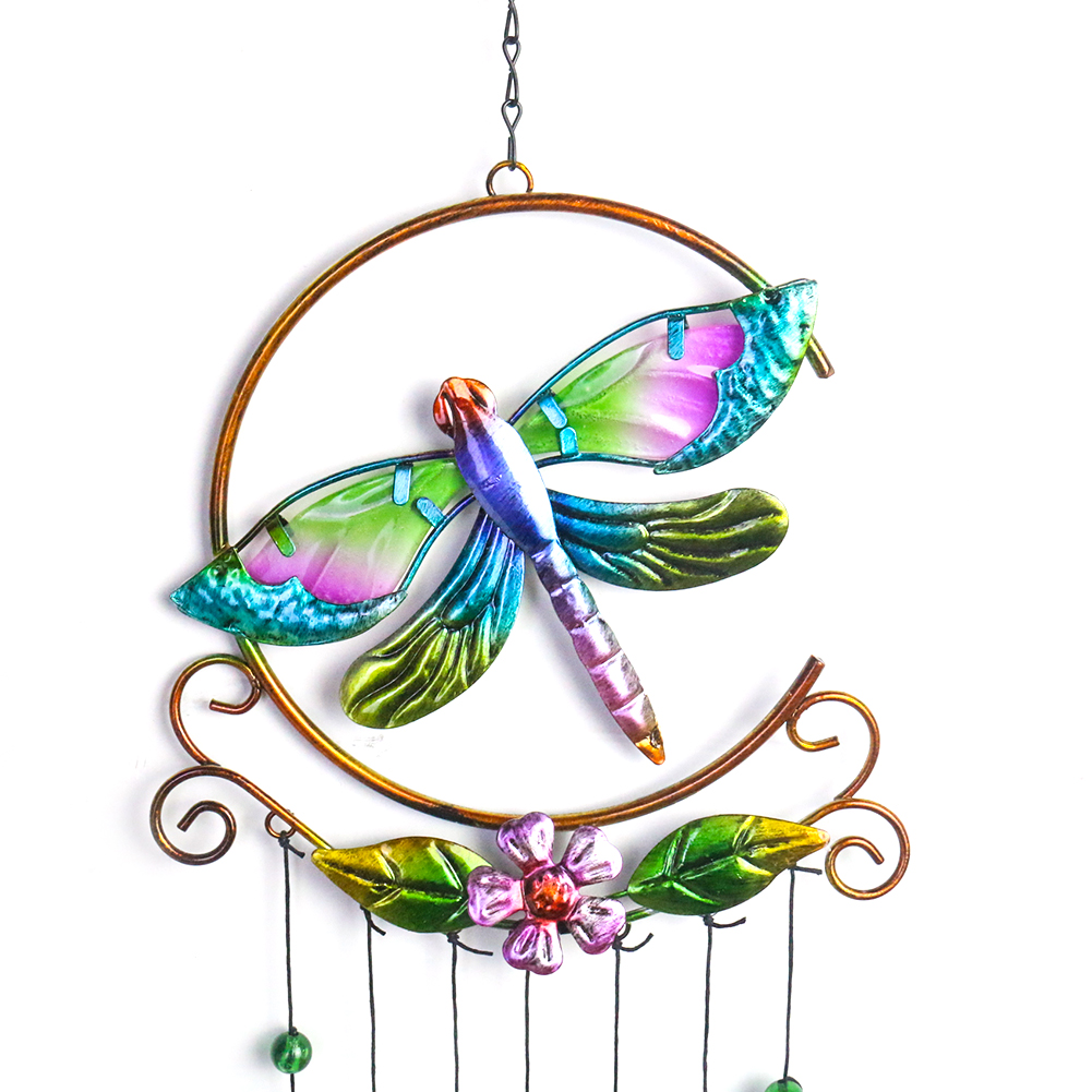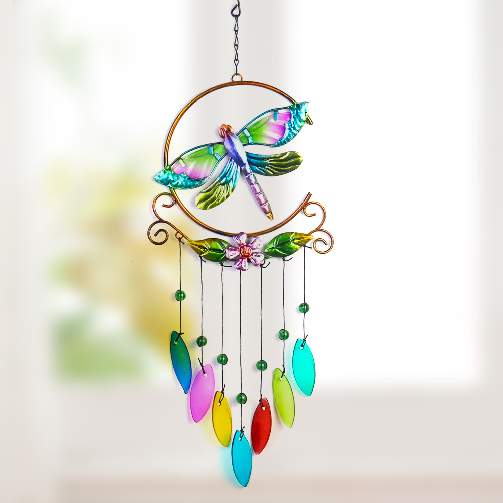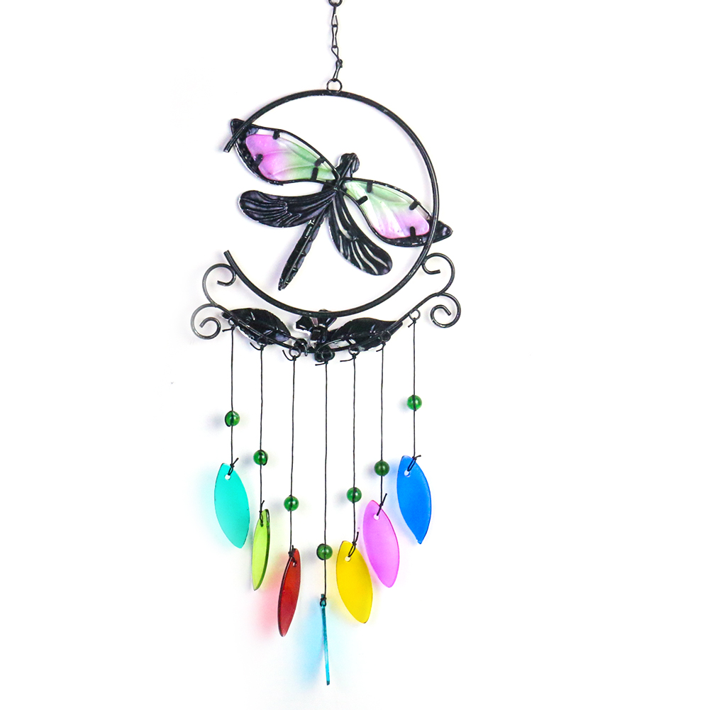 Металлическая витражная стрекоза, семицветная стеклянная подвеска, ветряные колокольчики, мелодия, сад, балкон, висячий орнамент, детский кавайный Декор для комнаты