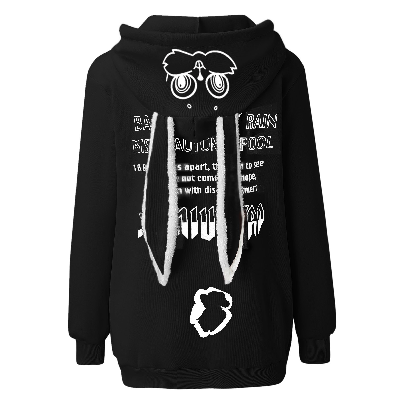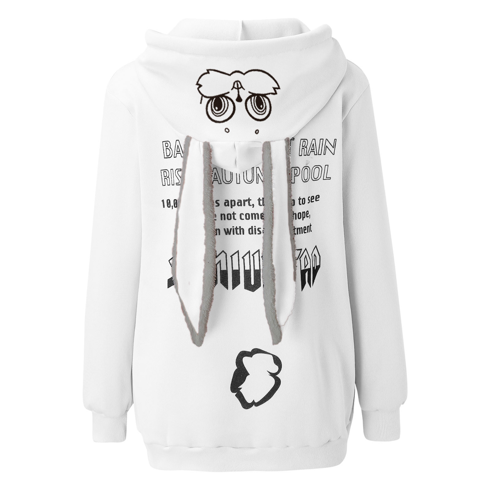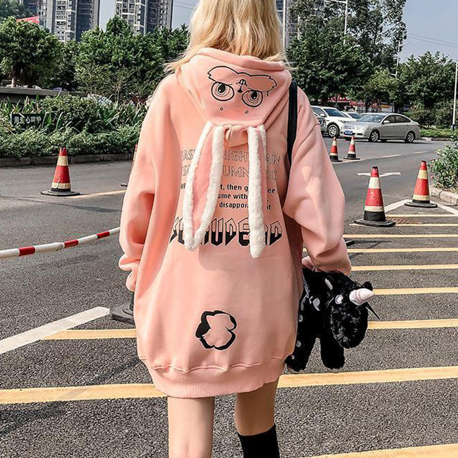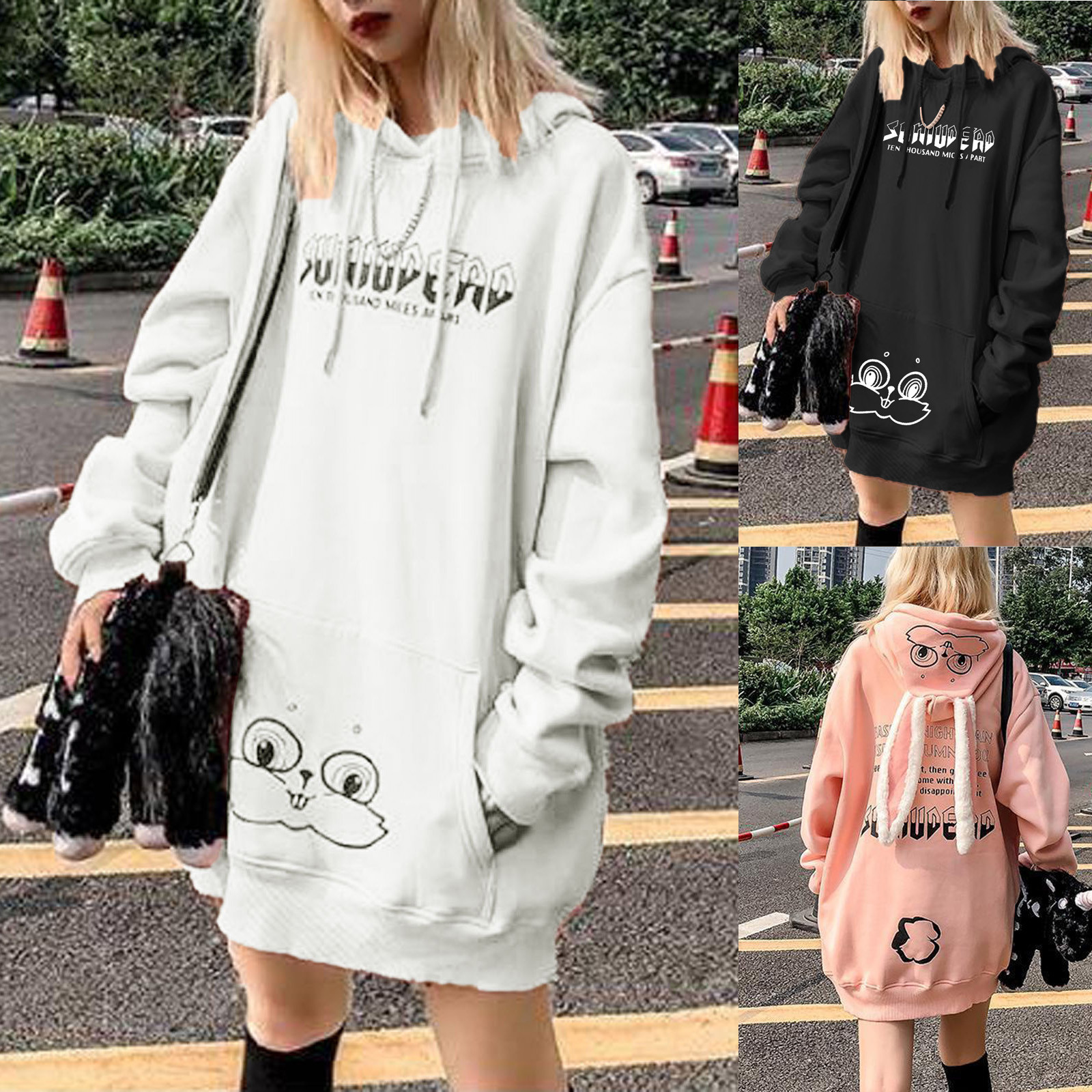 2021 Bunny Ear Loose Long Hoodie Women Autumn Rabbit Kawaii Hoodies Cartoon Women's Harajuku Cute Oversized Sweatshirts Pullover