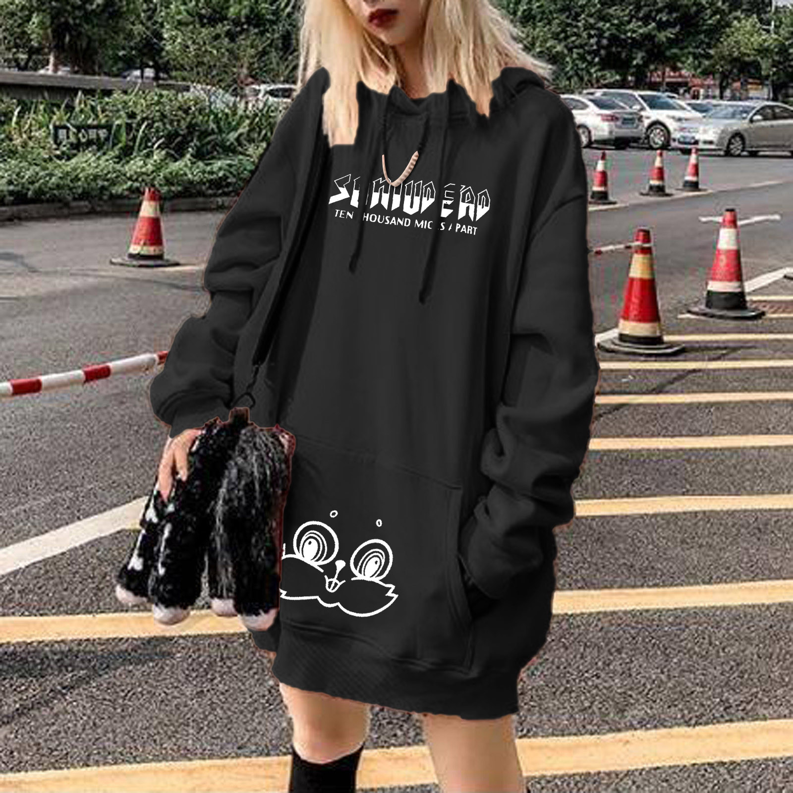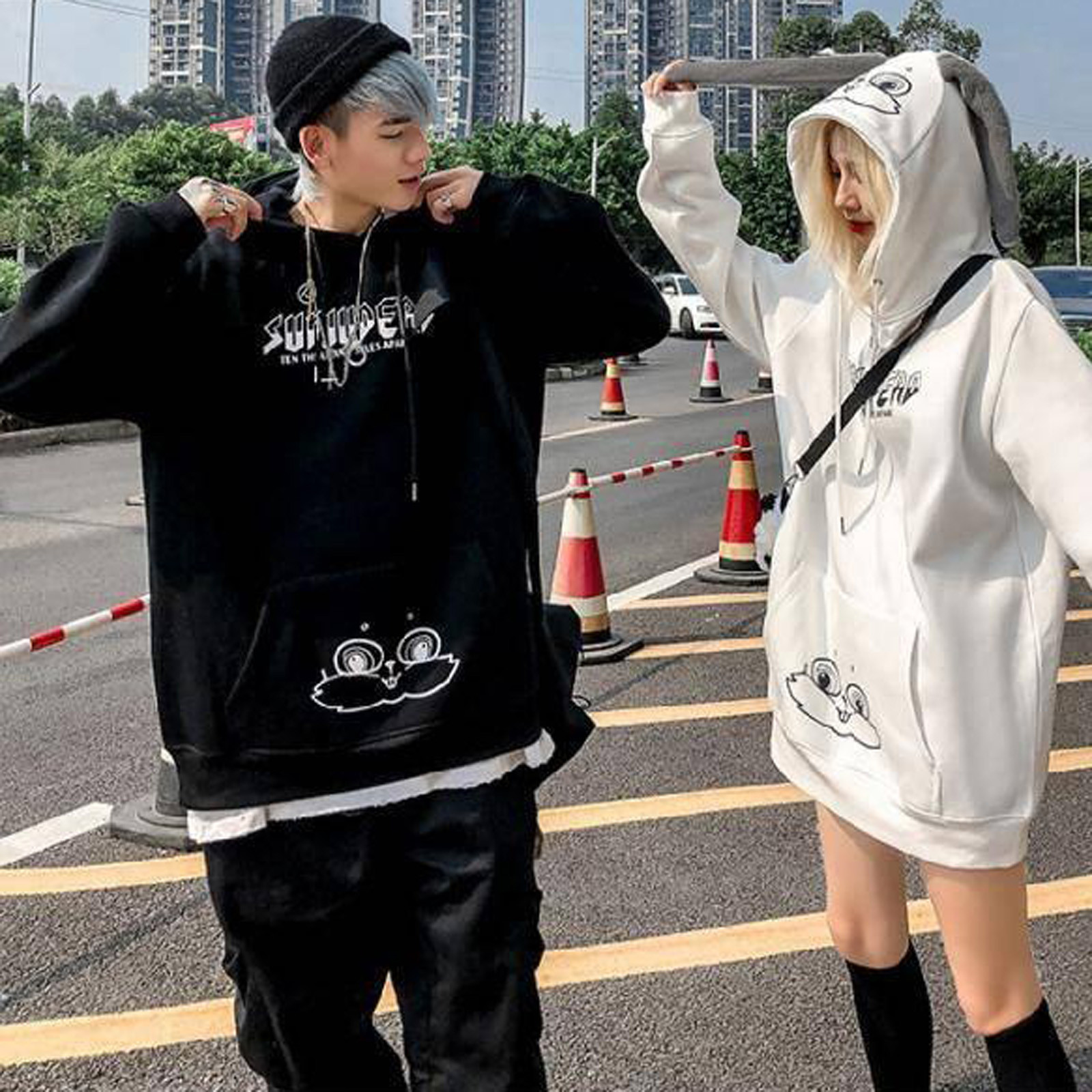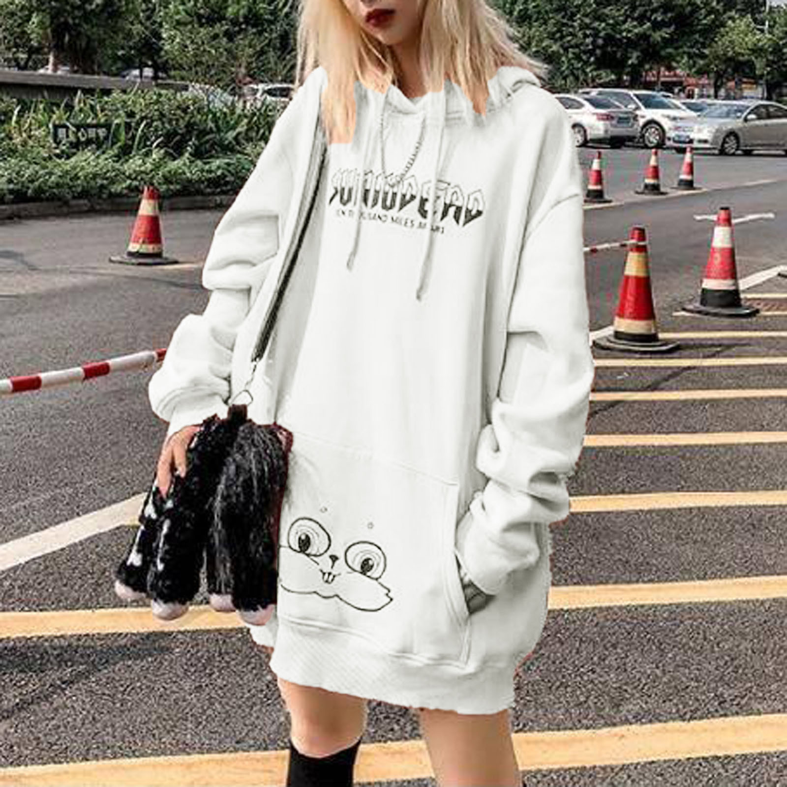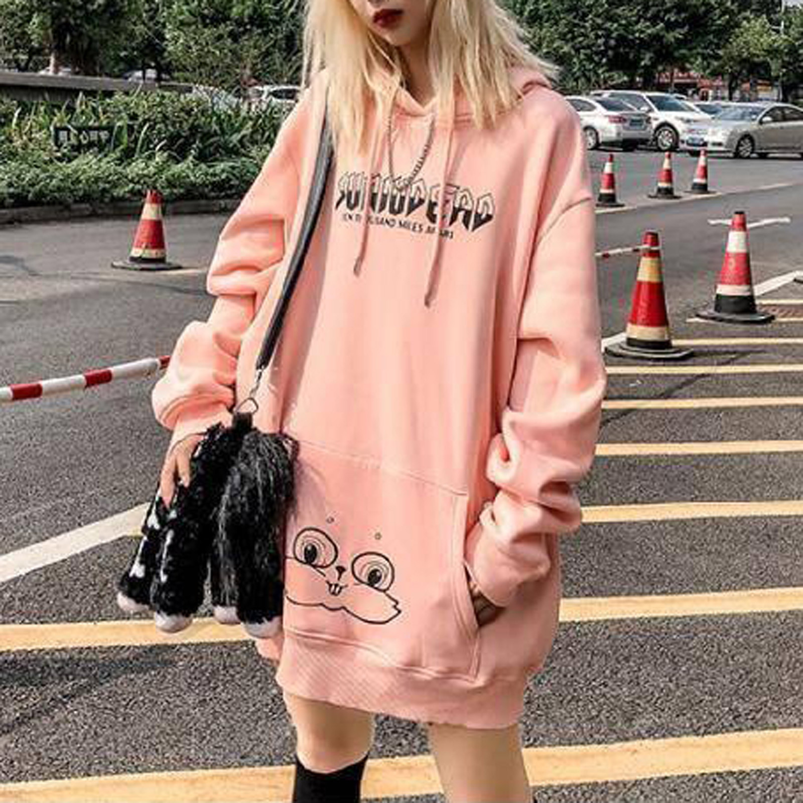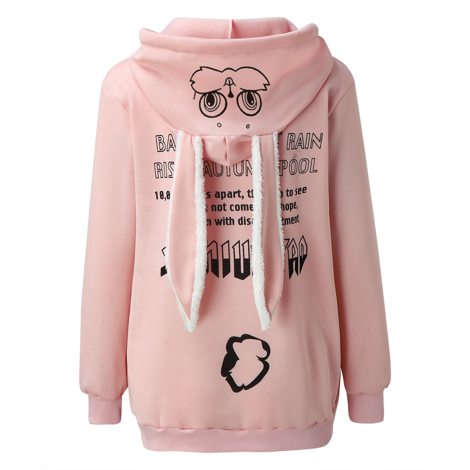 2021 Bunny Ear Loose Long Hoodie Women Autumn Rabbit Kawaii Hoodies Cartoon Women's Harajuku Cute Oversized Sweatshirts Pullover
