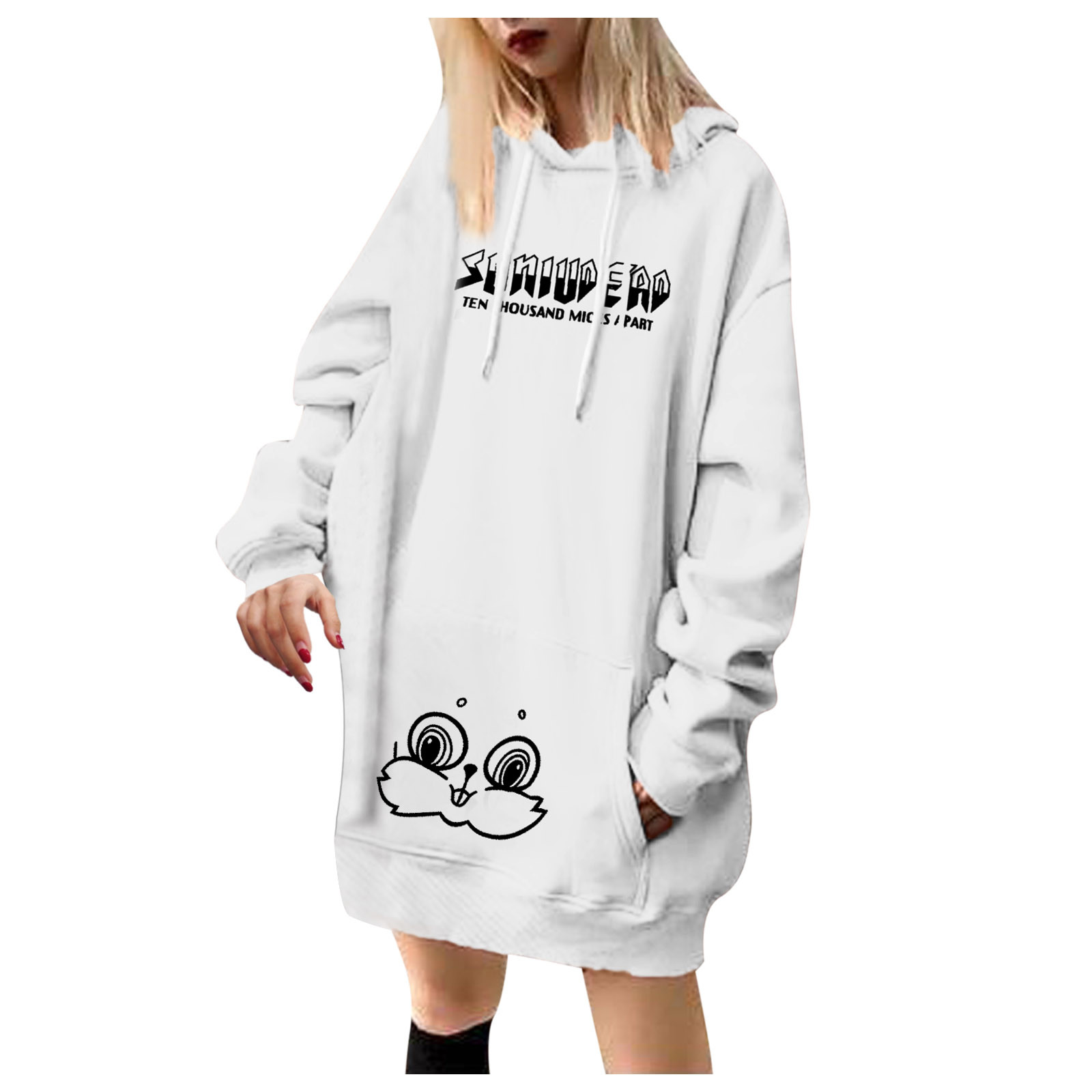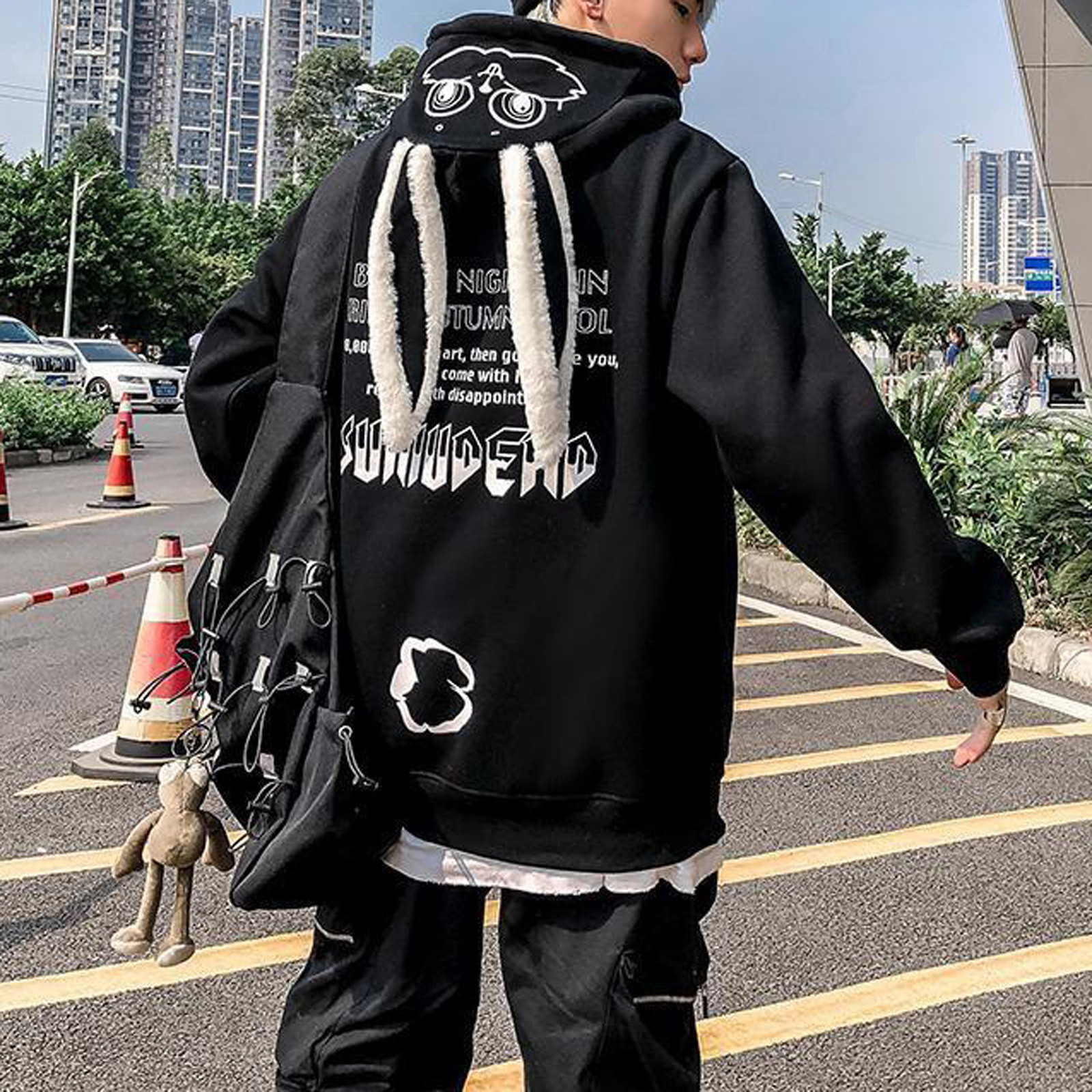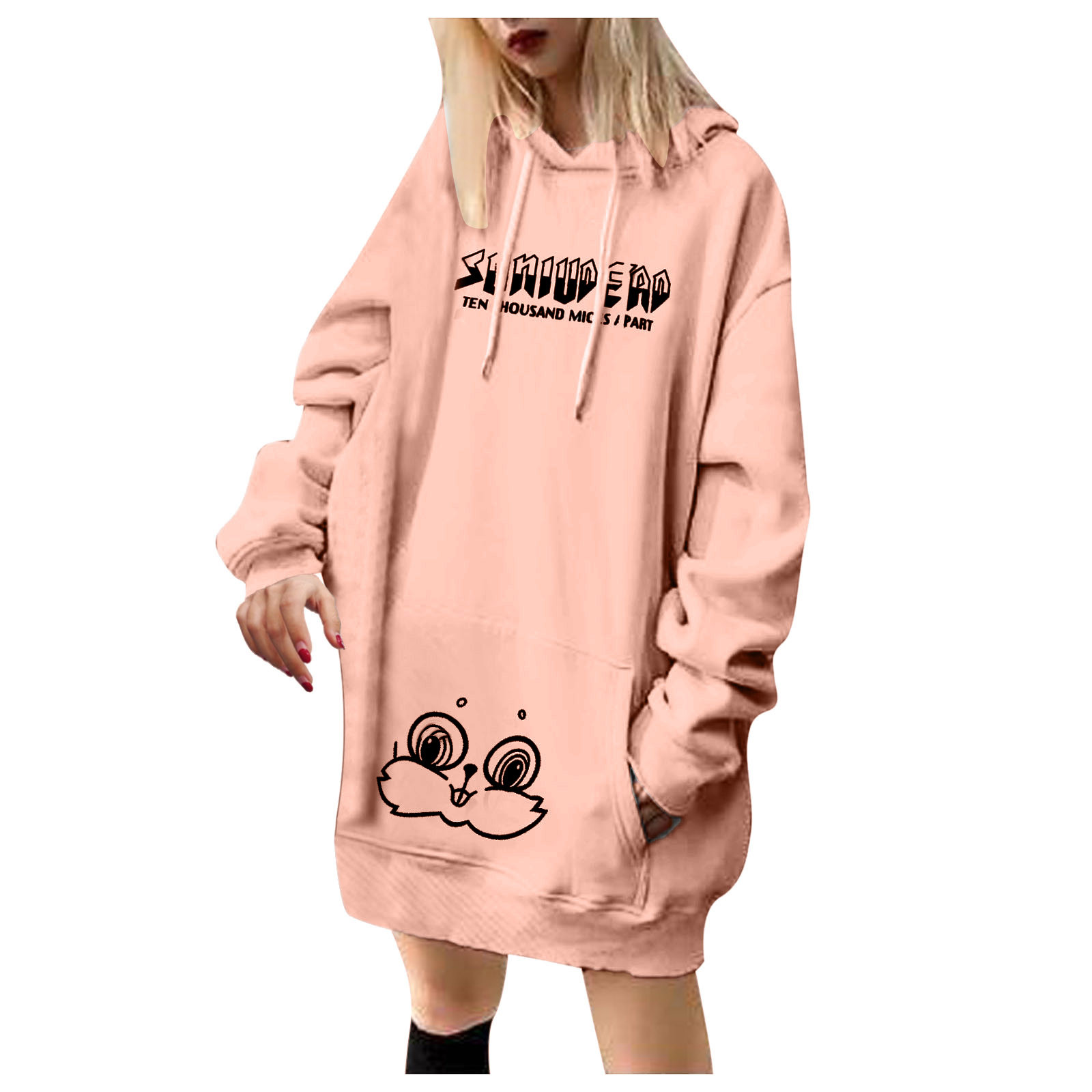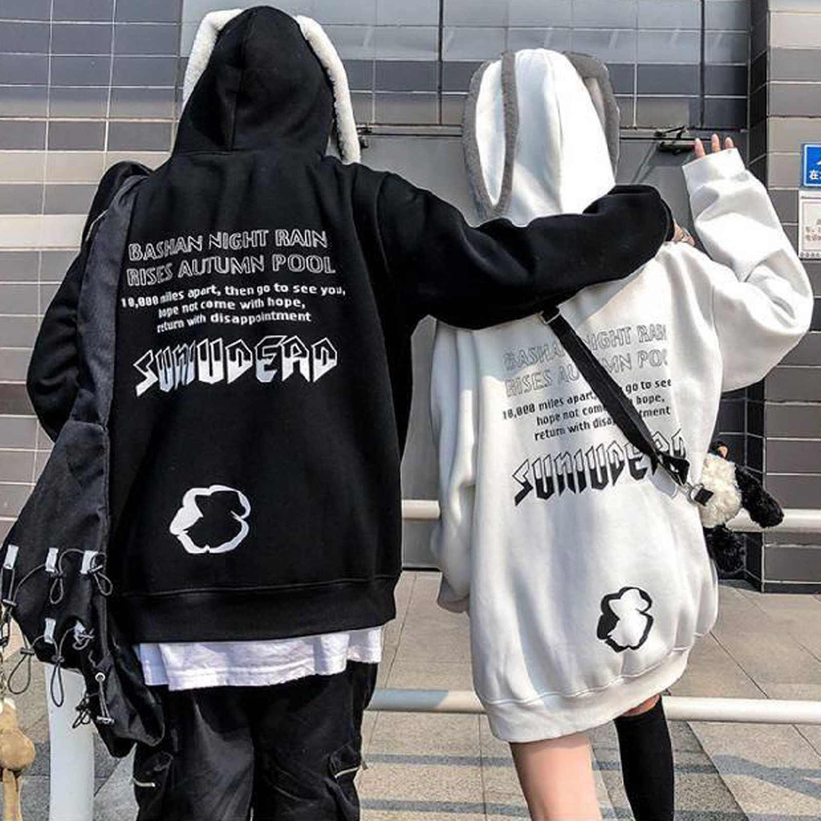 2021 Bunny Ear Loose Long Hoodie Women Autumn Rabbit Kawaii Hoodies Cartoon Women's Harajuku Cute Oversized Sweatshirts Pullover