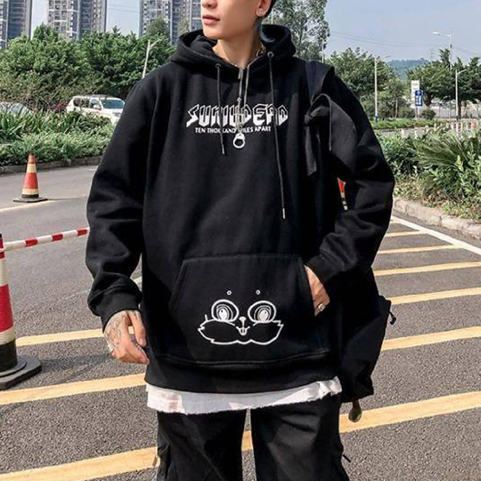 【Features】Hooded,Long Sleeve, Baggy loose fitting, Casual chic style,Print