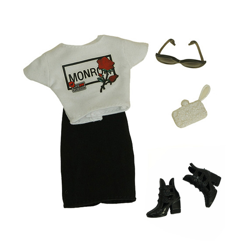 Розовая Модная Одежда для куклы Барби, комплект одежды для Барби, футболка, черная юбка, обувь, очки, кошелек, 1/6, куклы, аксессуары, игрушки