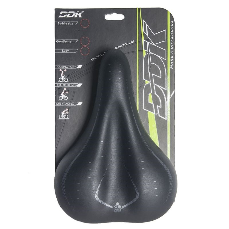 Велоседло комфортное женское DDK D-222. Анатомическое строение, конструкция Comfort System, верх из винилавеса, 390 грамм. Размер 255х185 мм. Уровень: Комфорт. Назначение: для города. Пол: Женский.