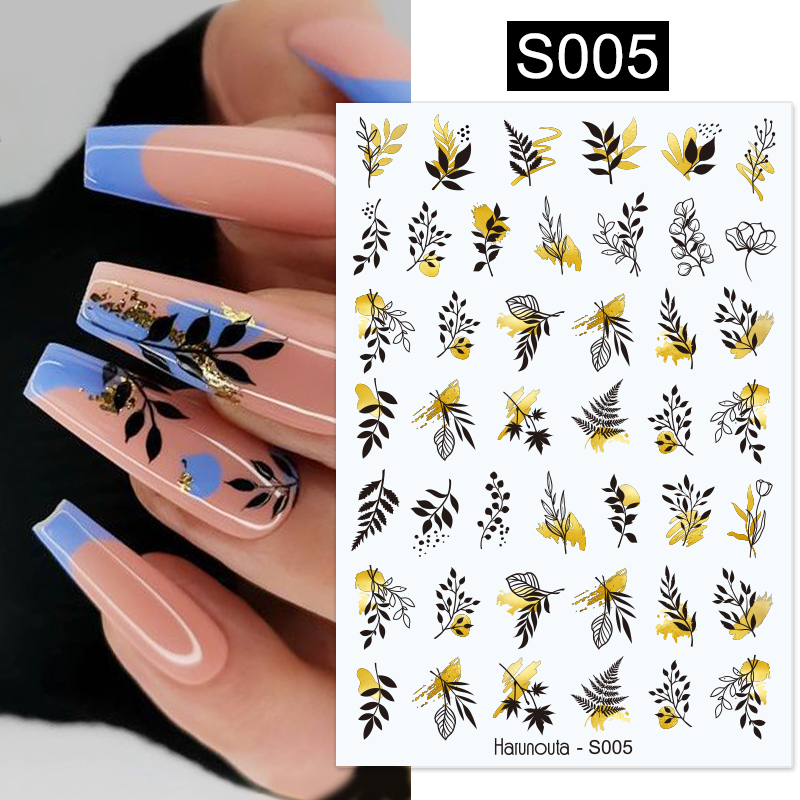 12 шт. 3D наклейки для ногтей золотой цветок лист кружево дизайн Геометрическая