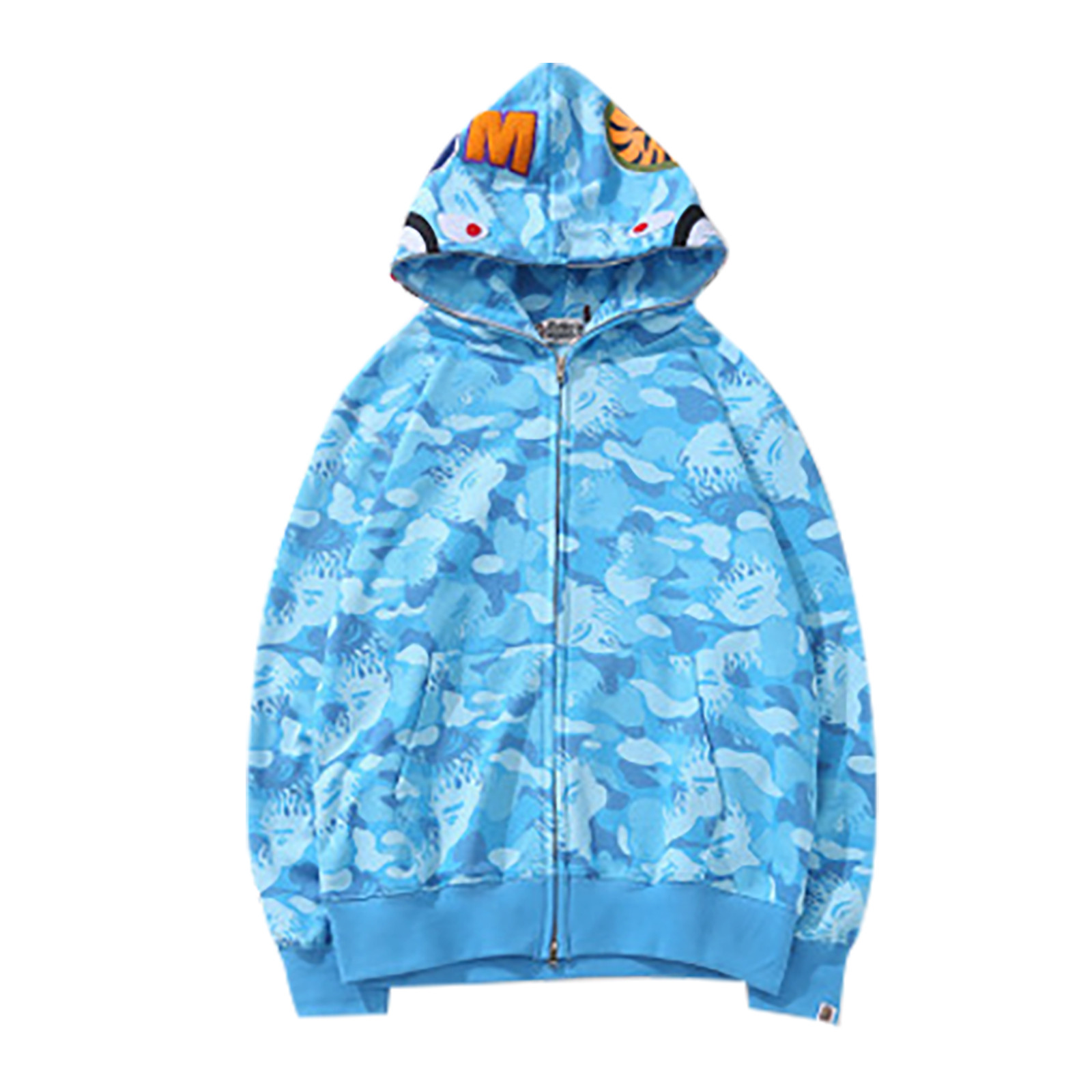 Модный повседневный Камуфляжный кардиган с капюшоном и рисунком Головы Акулы Для влюбленных; Свитер на молнии