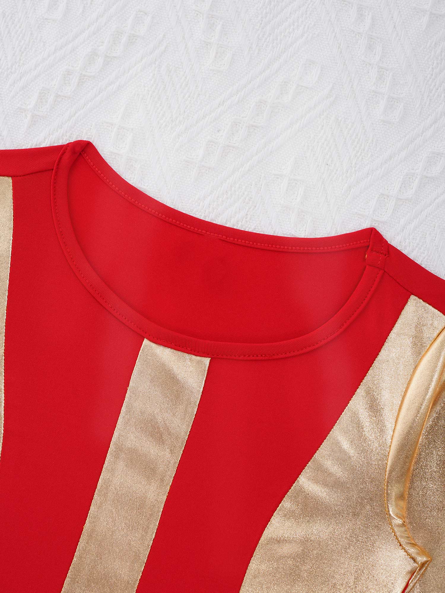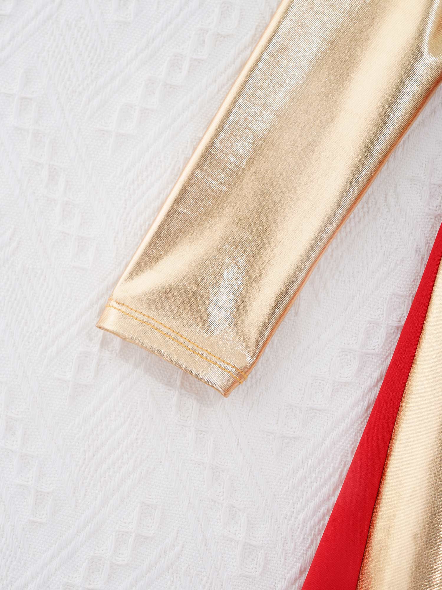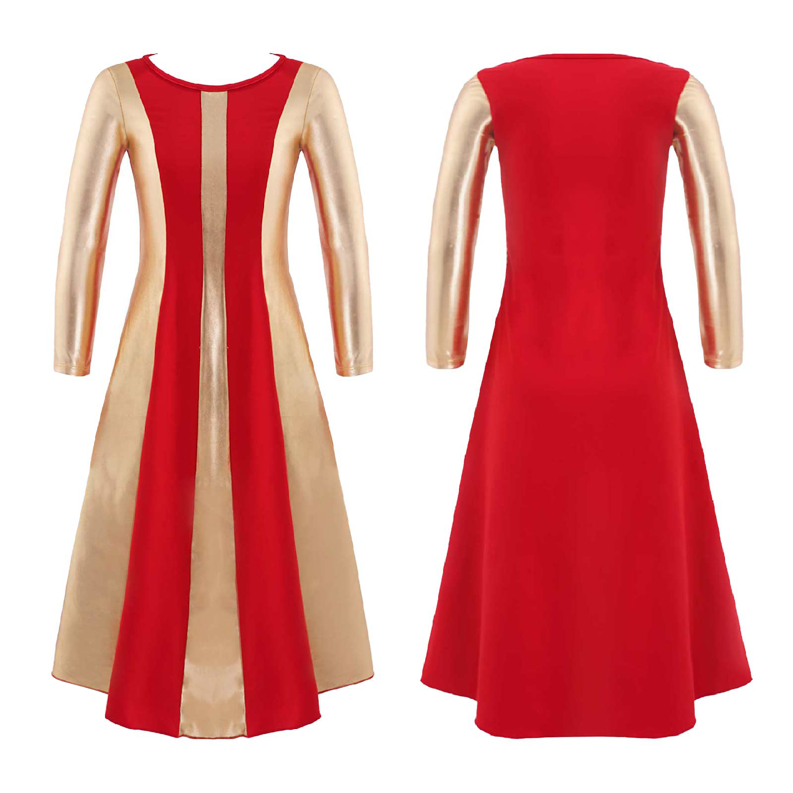 The dress features with long sleeve and regular round neckline, bronzing cloth patchwork style.