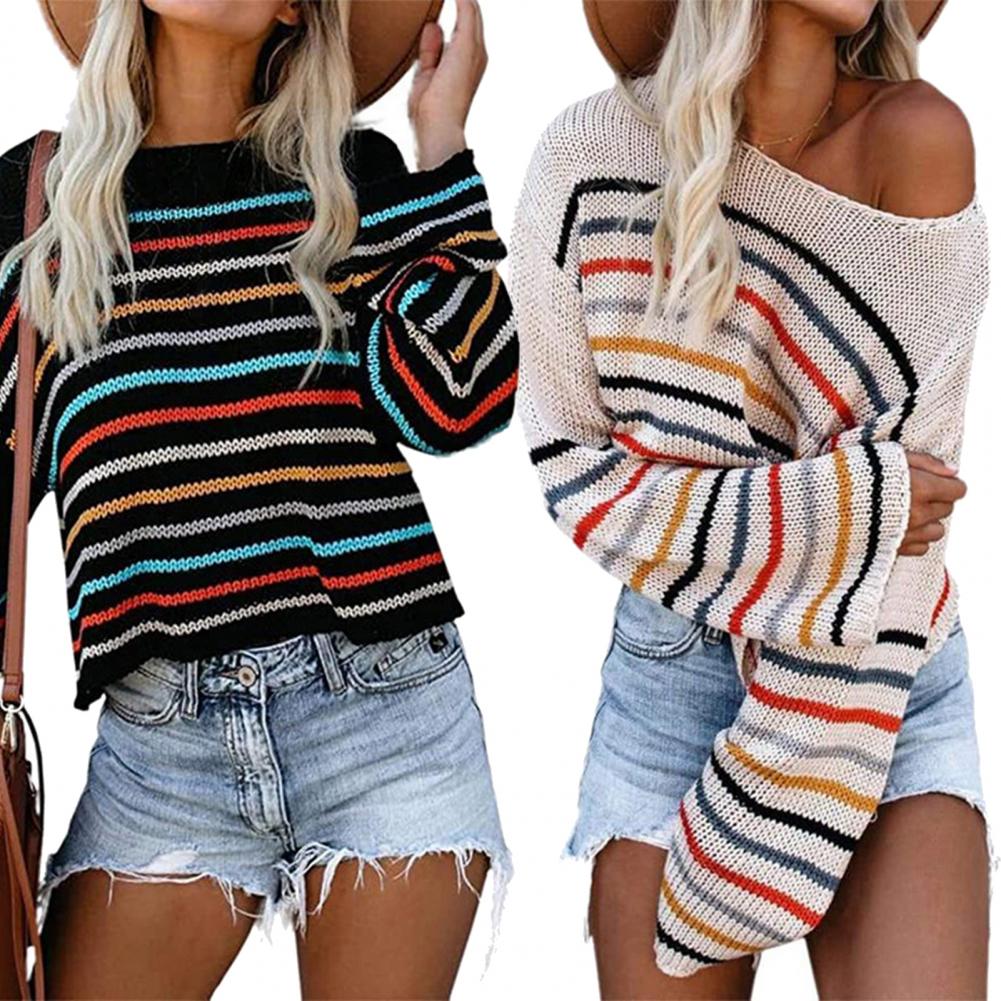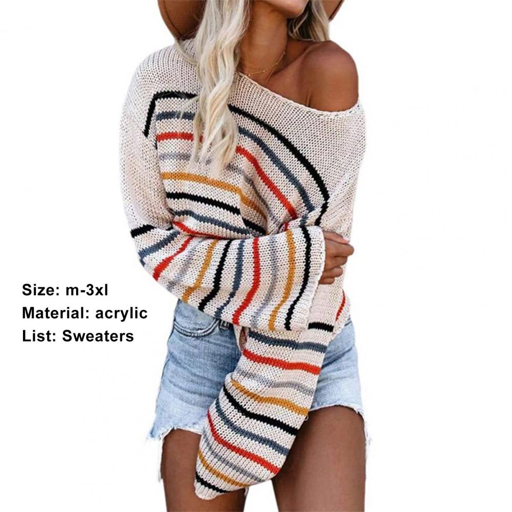 Женский вязаный свитер, свободный сексуальный полосатый свитер с открытыми плечами, джемперы для повседневной носки