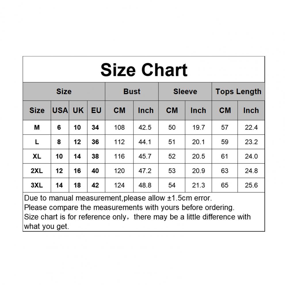Размер: 3XL, рукав: 54 см/21,3 ", обхват груди: 124 см/48,8", Длина: 65 см/25,6 "(прибл.)