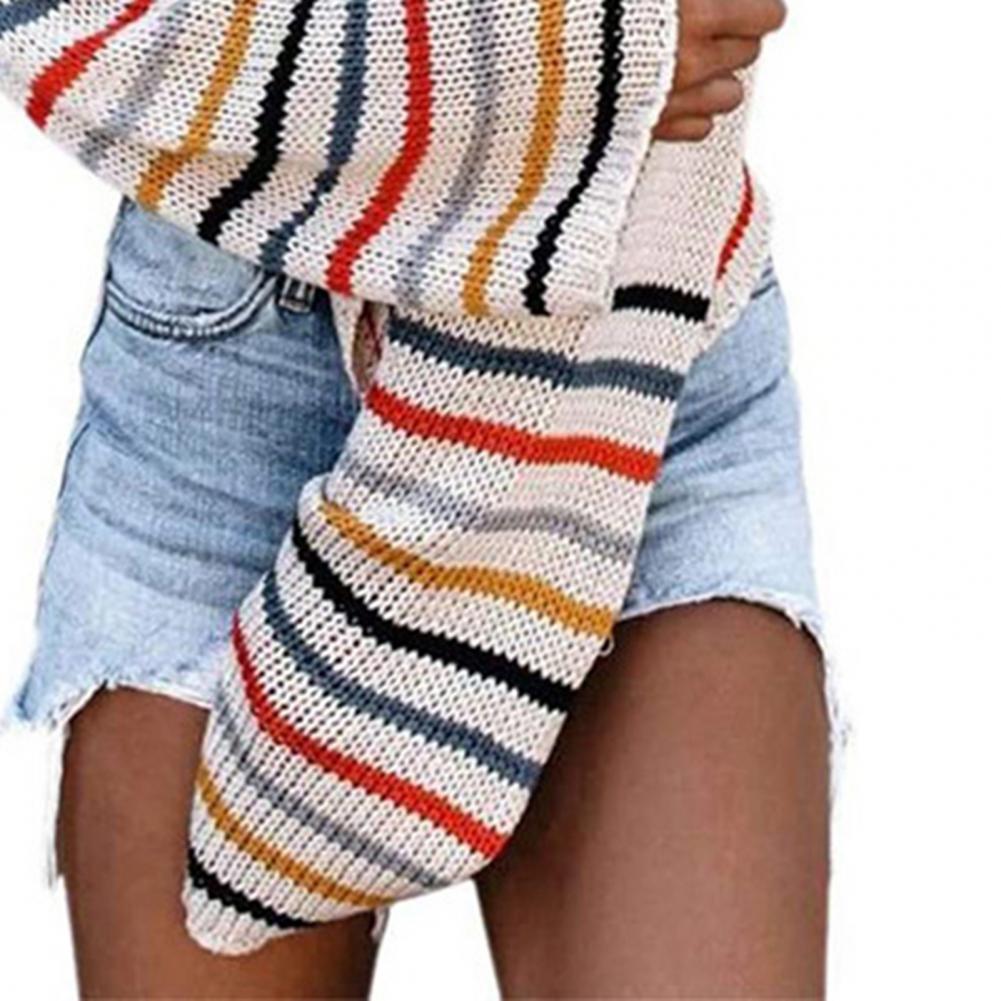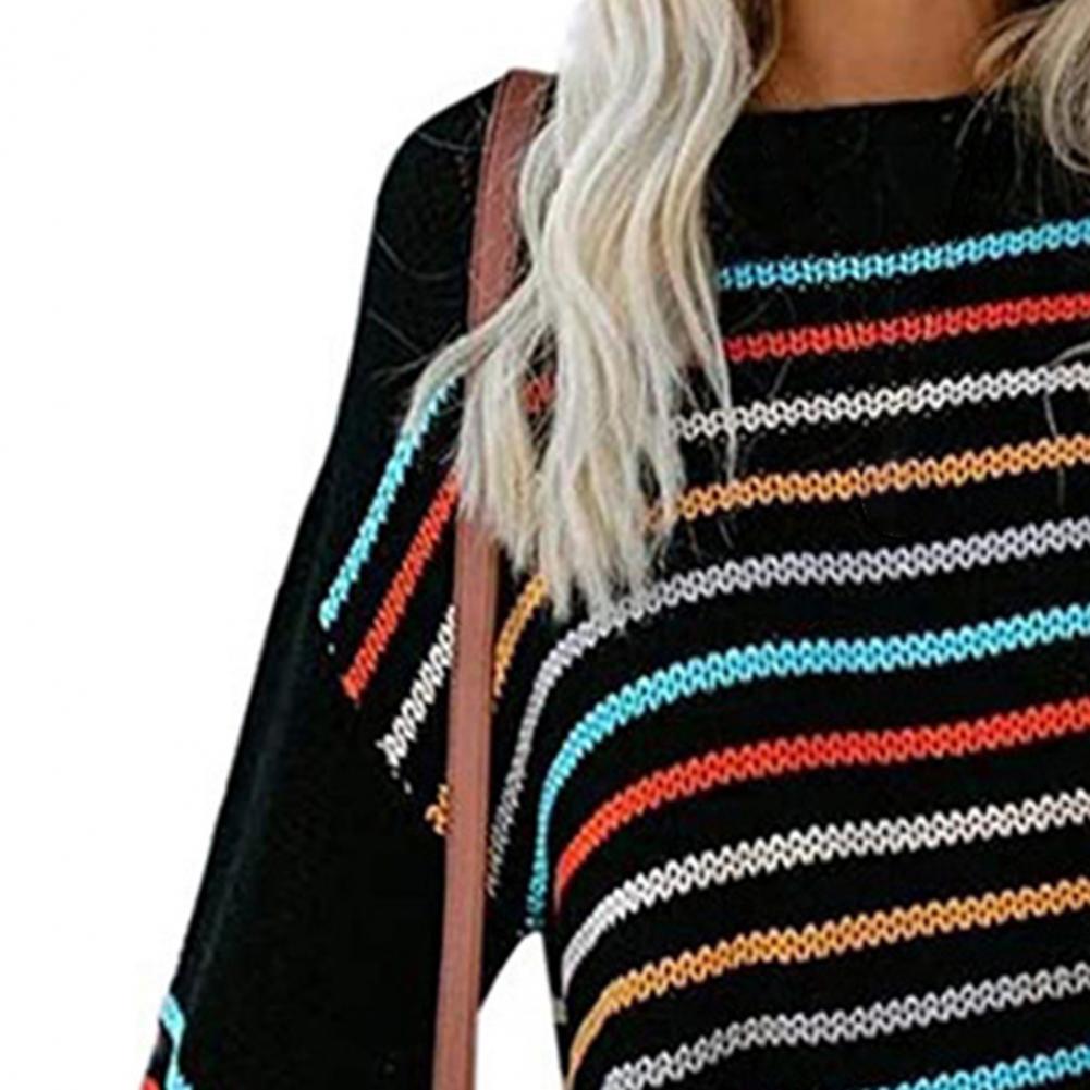 Особенности этого свитера-длинные рукава, свободный крой и стиль пуловера. Красочный дизайн в полоску делает его особенным и придает вам более стильный вид.