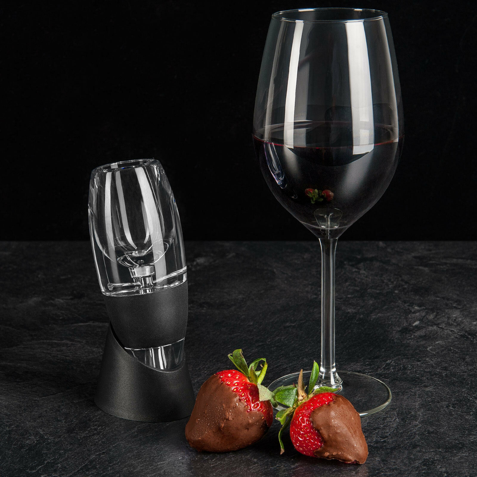 Премиум аэратор для вина со встроенным фильтром, призванным обеспечить лучший дегустационный бокал вина за меньшее время, чем обычно может быть достигнуто.