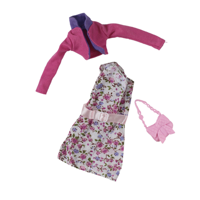 1 комплект, розовое короткое пальто, Цветочная юбка, кошелек для куклы Барби, комплект одежды, модные наряды, 1/6, аксессуары для кукольного домика, детские игрушки