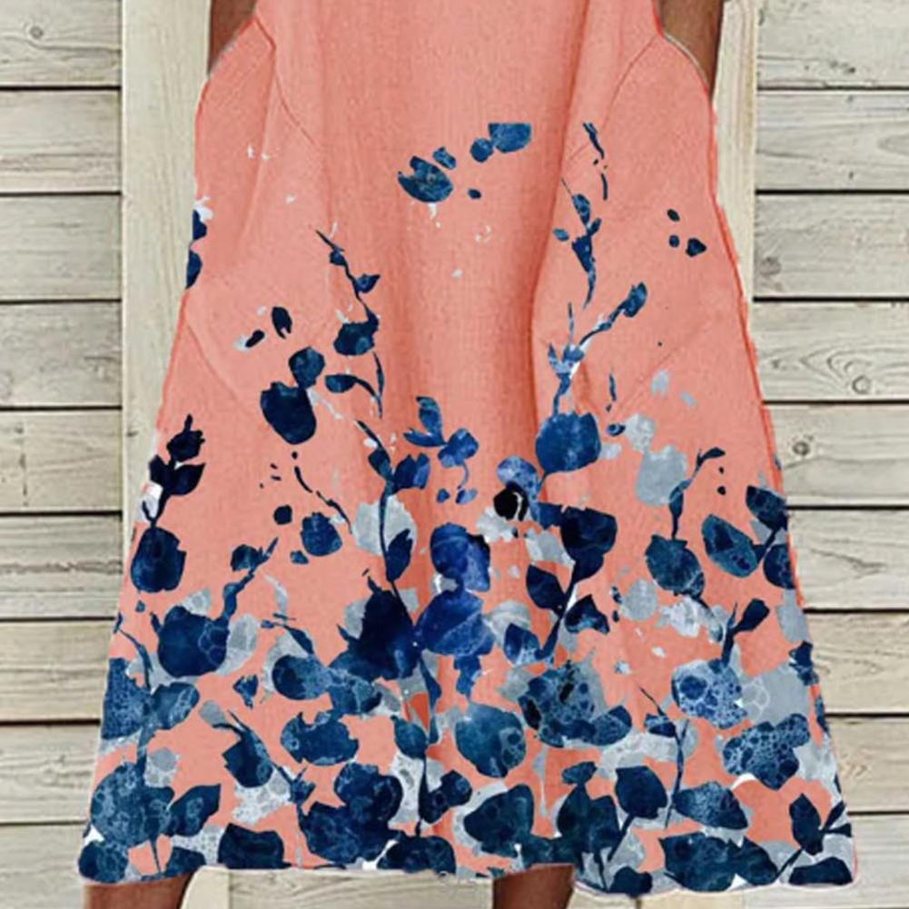 Цветочный принт и дизайн без рукавов делают это платье миди уникальным, модным и красивым.