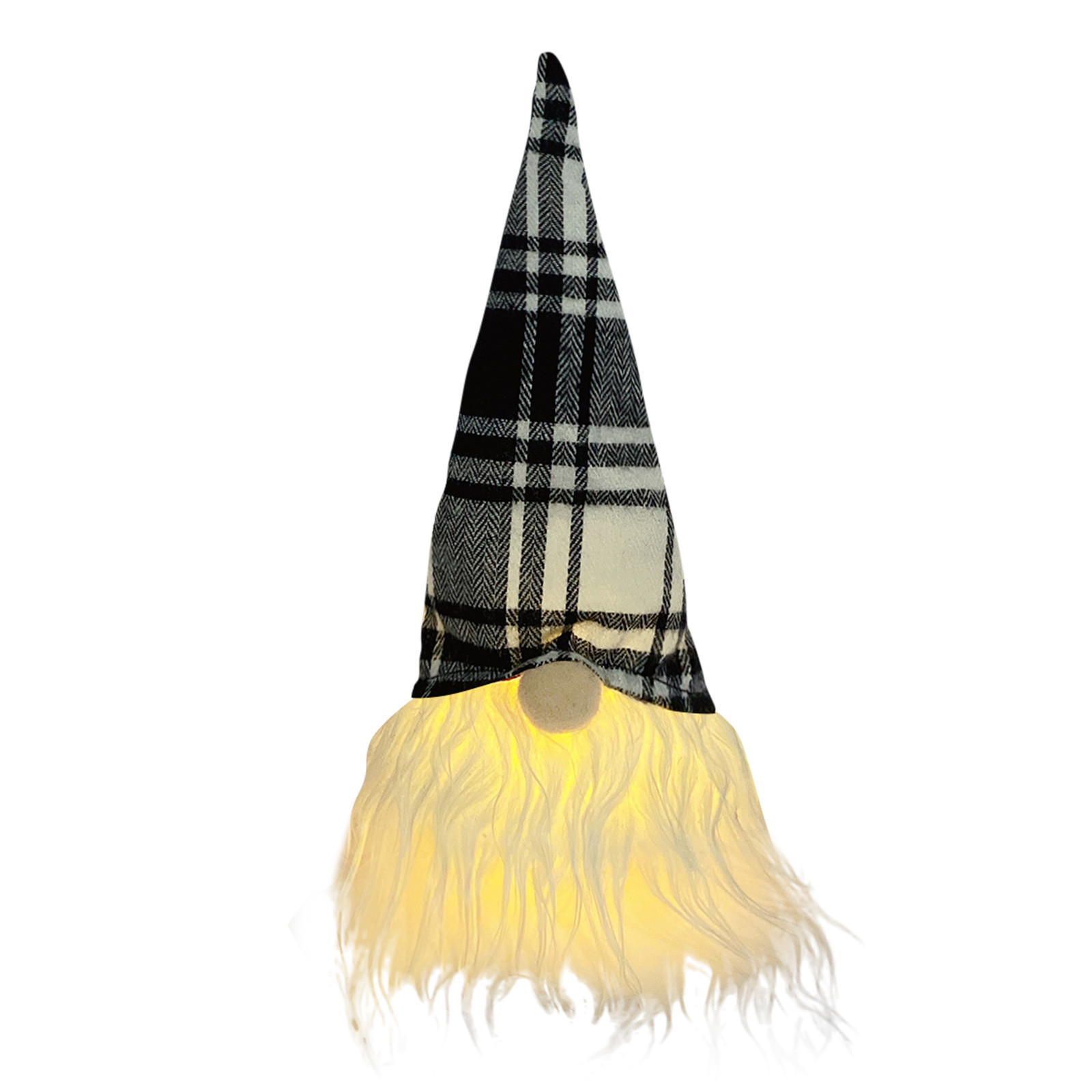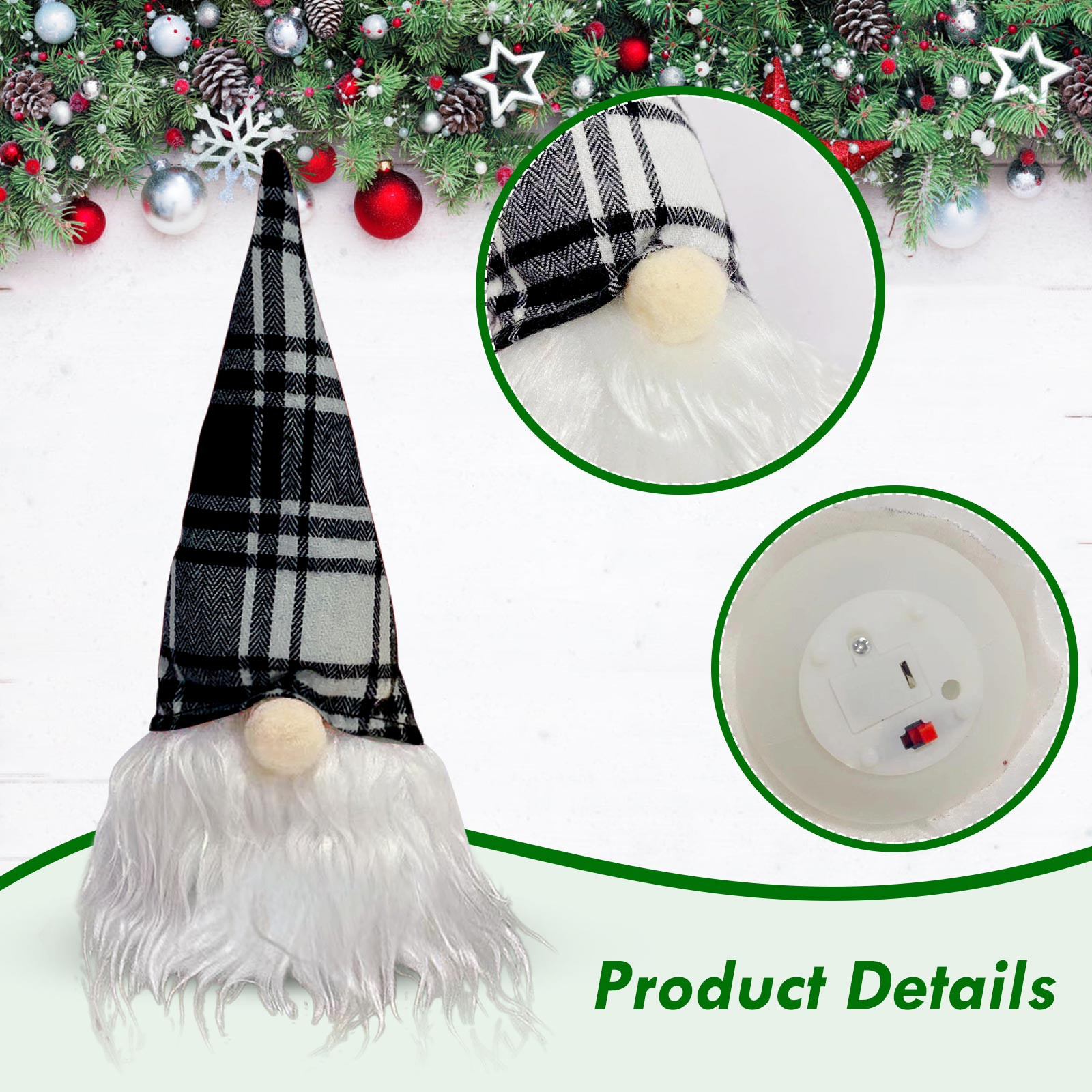 Уникальное украшение для дома ручной работы: Рождественский Гном с огнями носит традиционную шляпу. Корпус рождественского гнома излучает теплый желтый светильник, и есть переключатель в нижней части тела, который может быть включен или выключен. Santa gnome имеет тяжелую базу, которая обеспечивает дополнительную стабильность и не перегружается. Гибкая шляпа может быть размещена по желанию. Подходит для офисной, внутренней и наружной отделки дома.