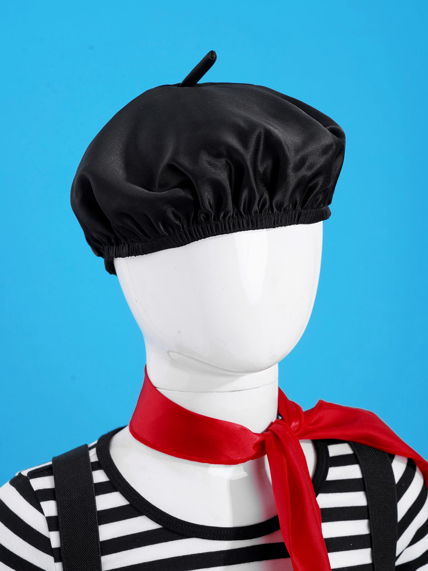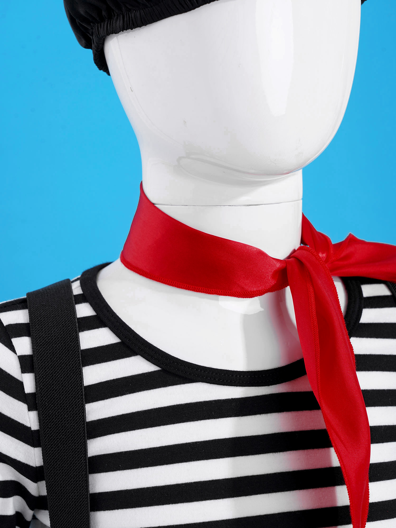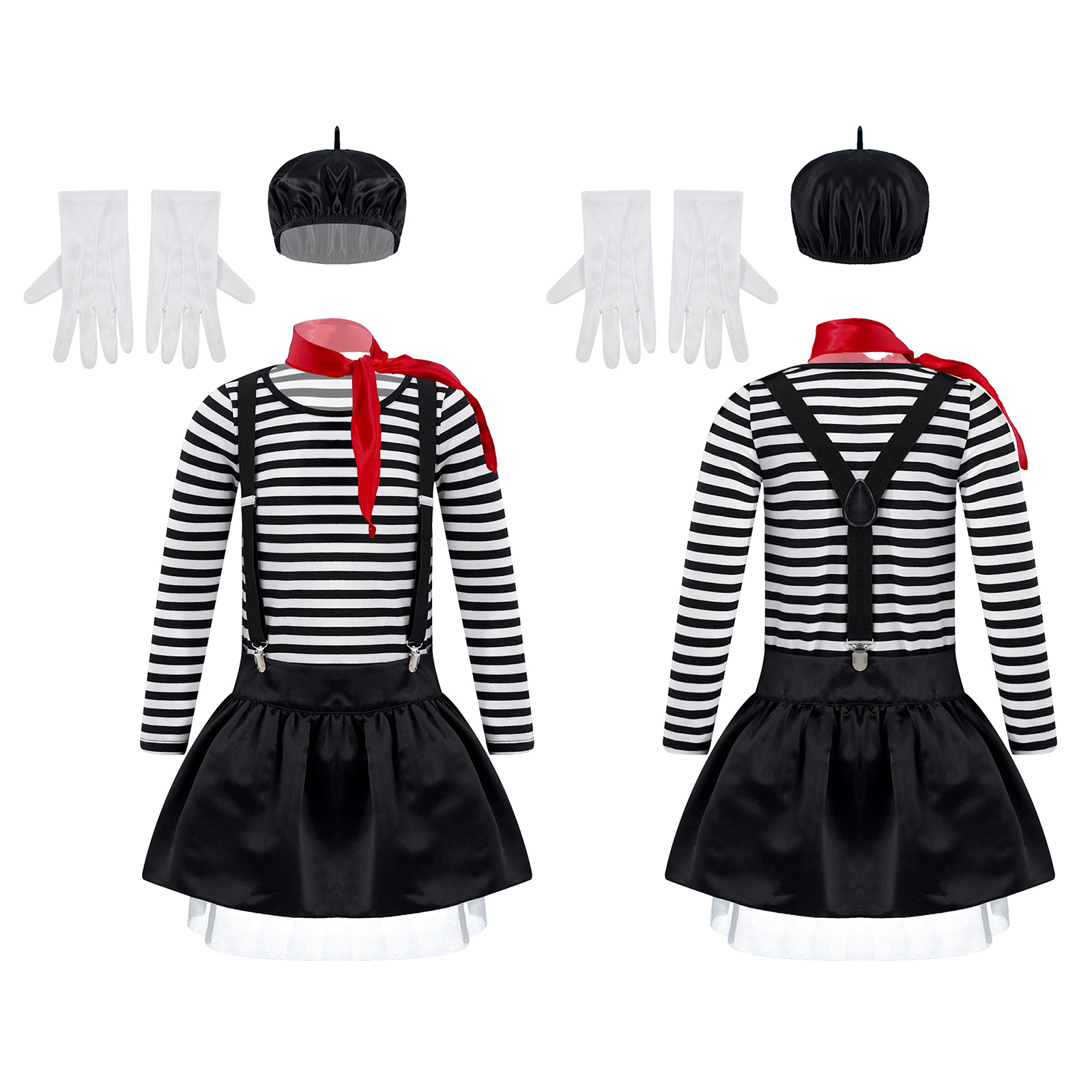 Детский костюм МИМ для девочек; Топы в полоску с принтом; Юбка со съемными Подтяжками; Шарф; Берет; Шапка и перчатки; Комплект.