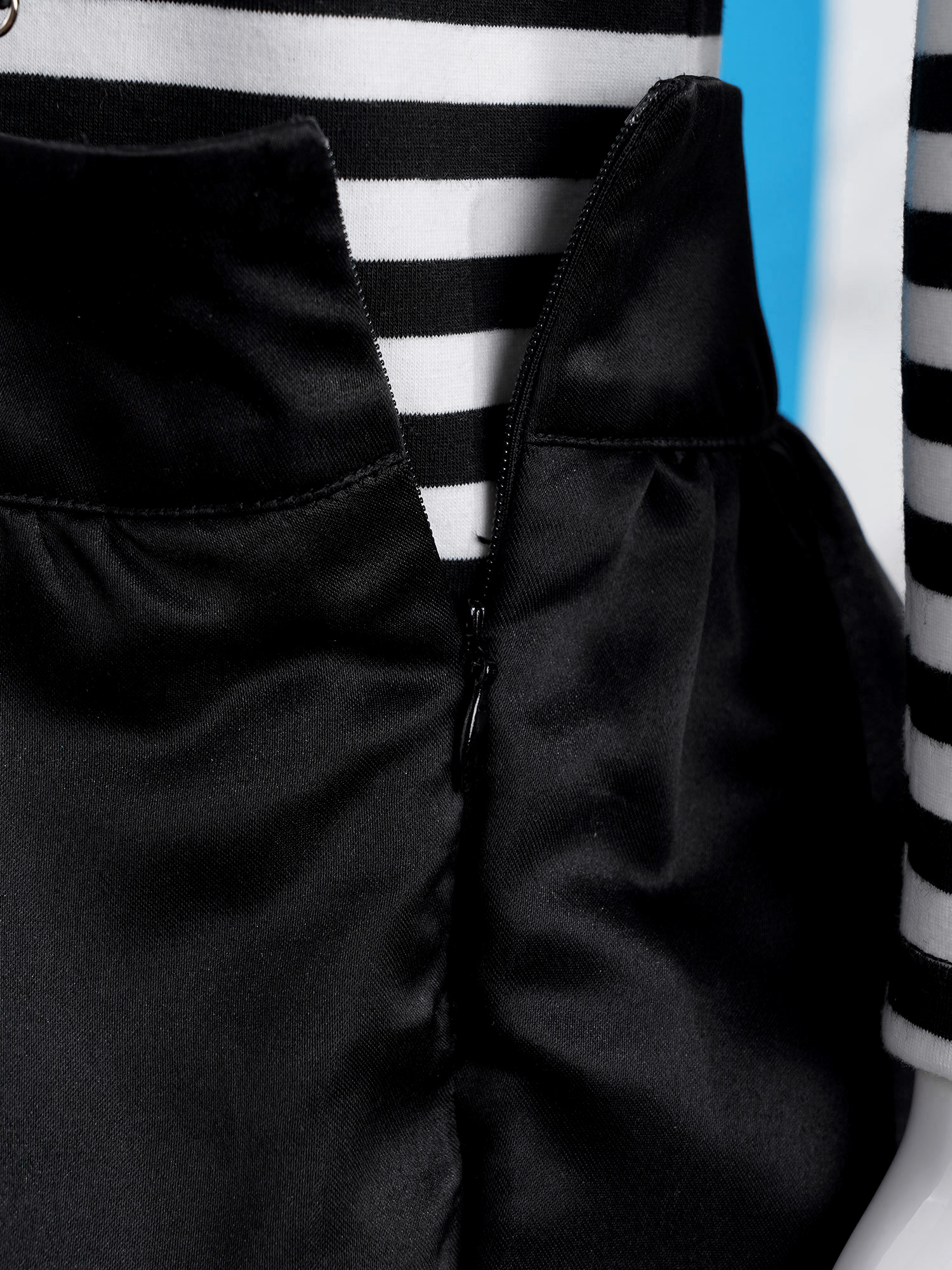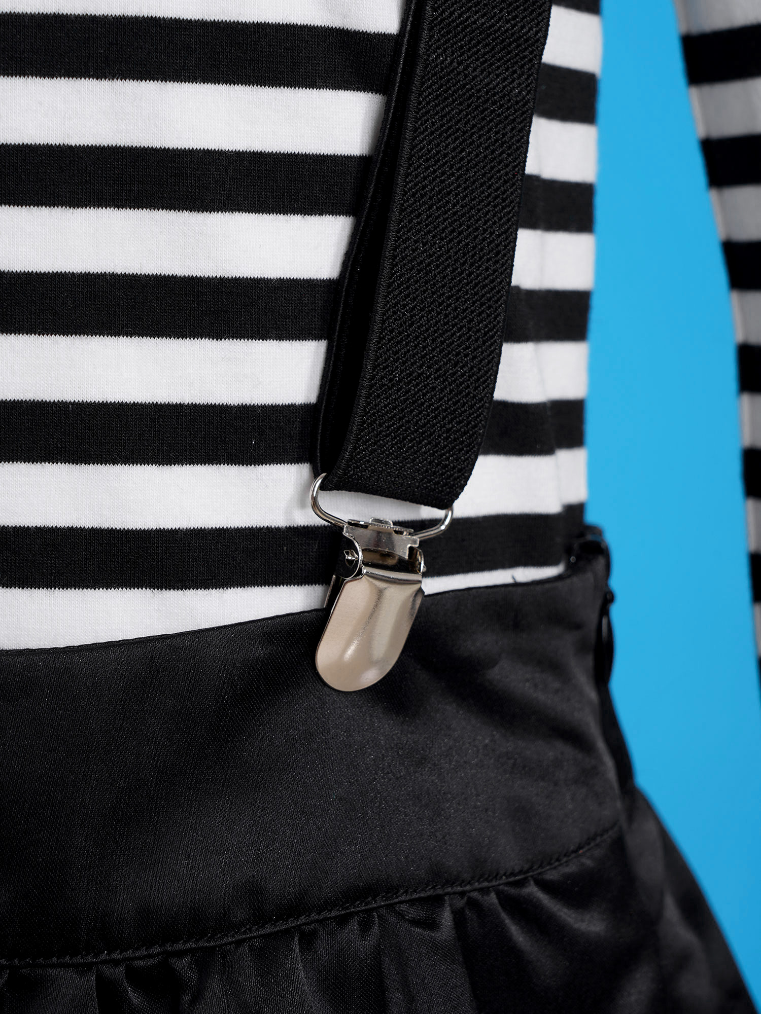 Топы с принтом в полоску; Съемная юбка на подтяжках с аксессуарами делают МИМ-шоу полным и реальным.