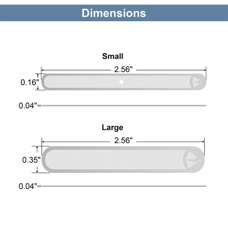 Маленький: 6.5x0.4x0.1 см/2.56x0.16x0.04in, Большой: 6.5x0.8x0.1 см/2.56x0.35x0.04in
