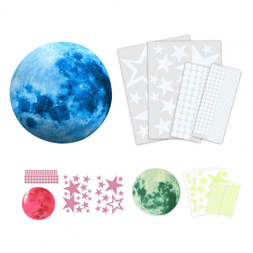 1 Set Wall Stickers Moon Stars Pattern Glow in the Dark PVC Bedroom Ceiling Decals Home Decor