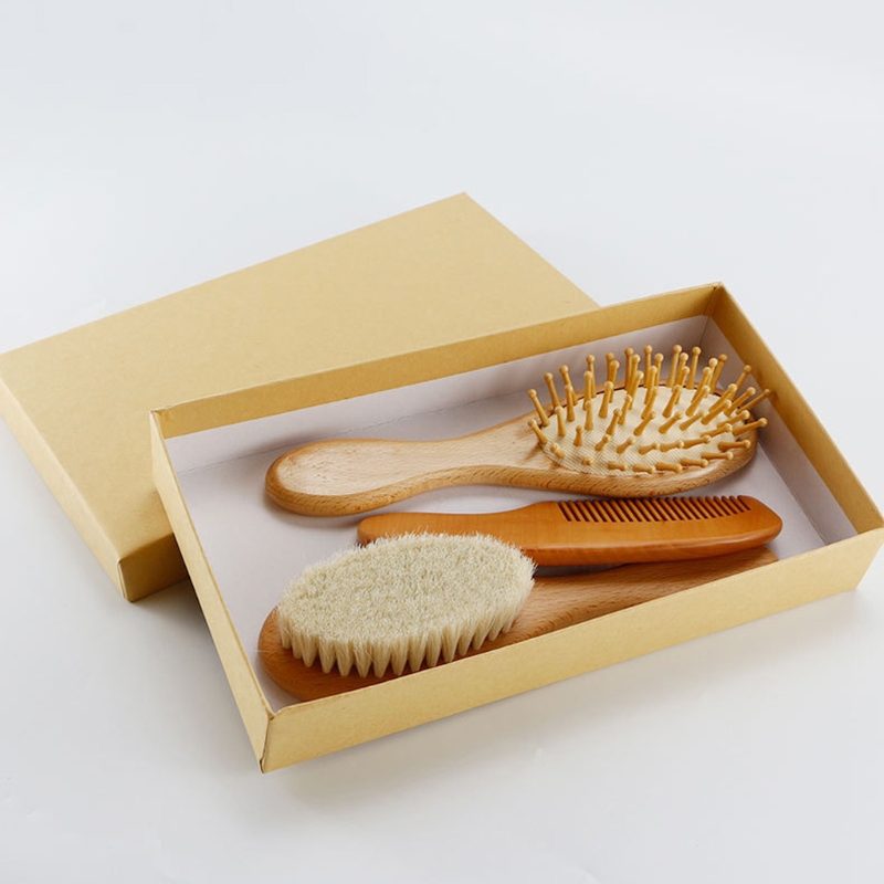 3 шт. Набор детских расчесок и расчесок для новорожденных, Натуральная шерсть, расческа для волос, массажер для головы младенцев, подарок для ребенка