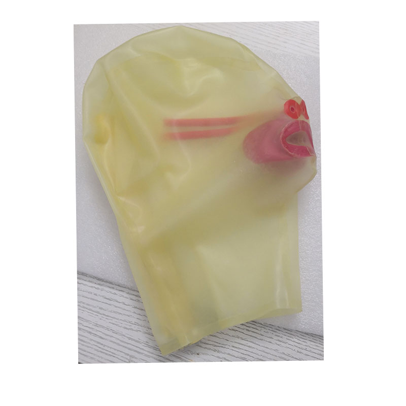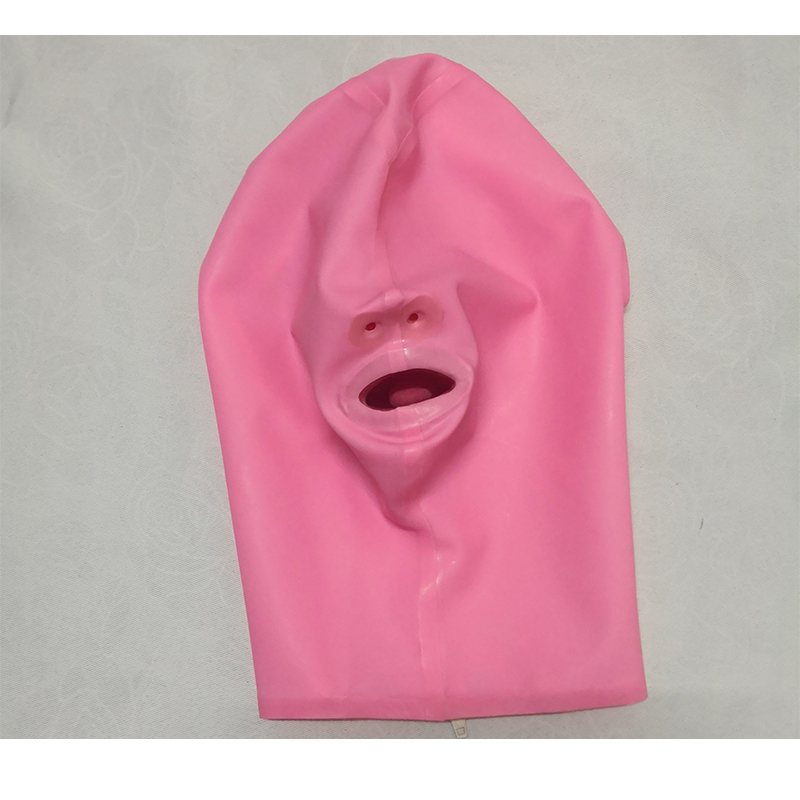 Розовый прозрачный латексный капюшон с длинным носом 15 см резиновая маска