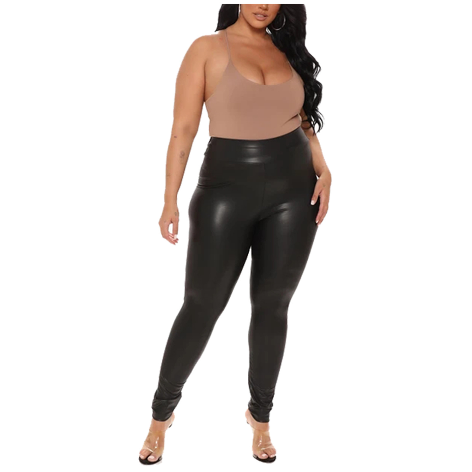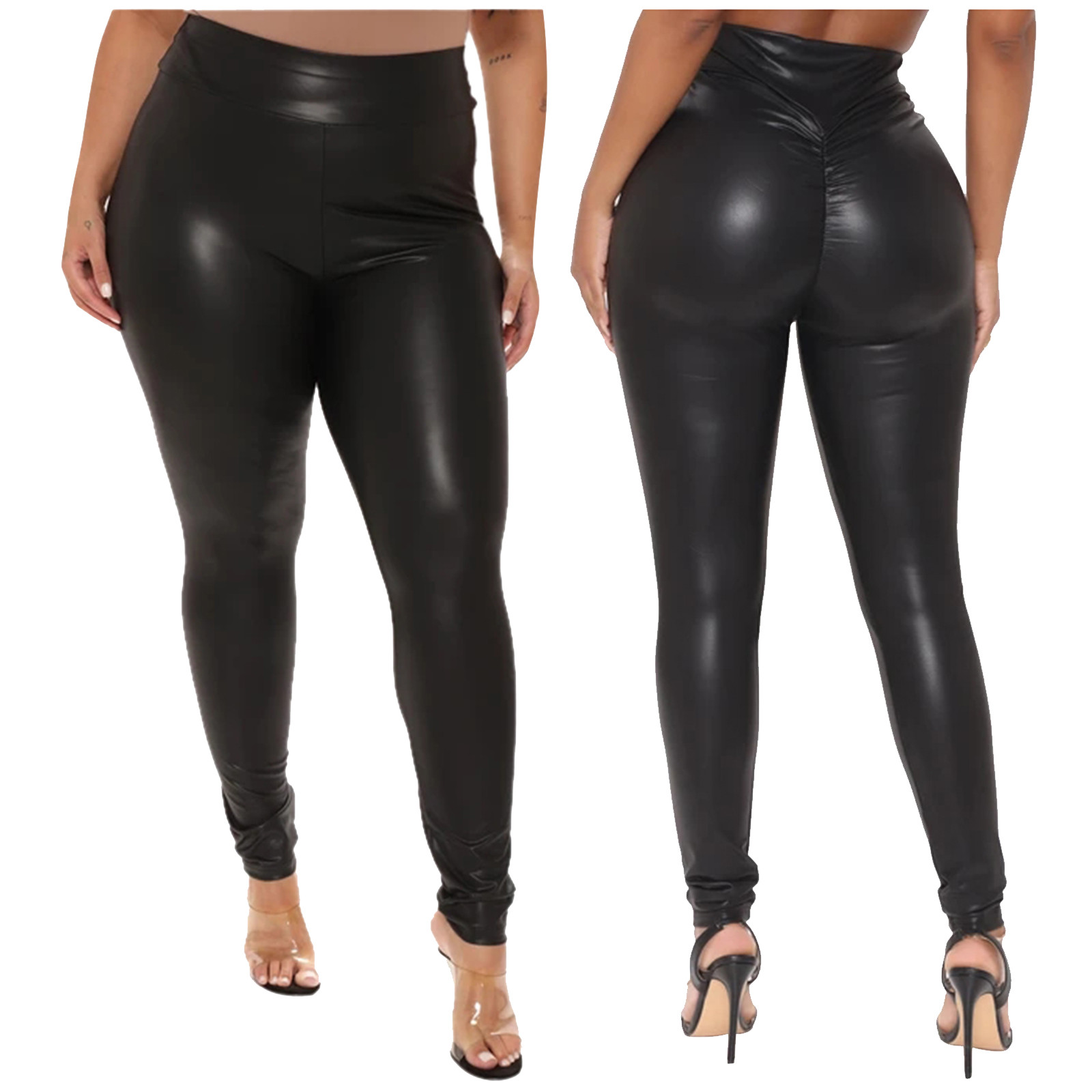Женские узкие черные кожаные брюки большого размера с высокой талией, повседневные Стрейчевые брюки, кожаные брюки