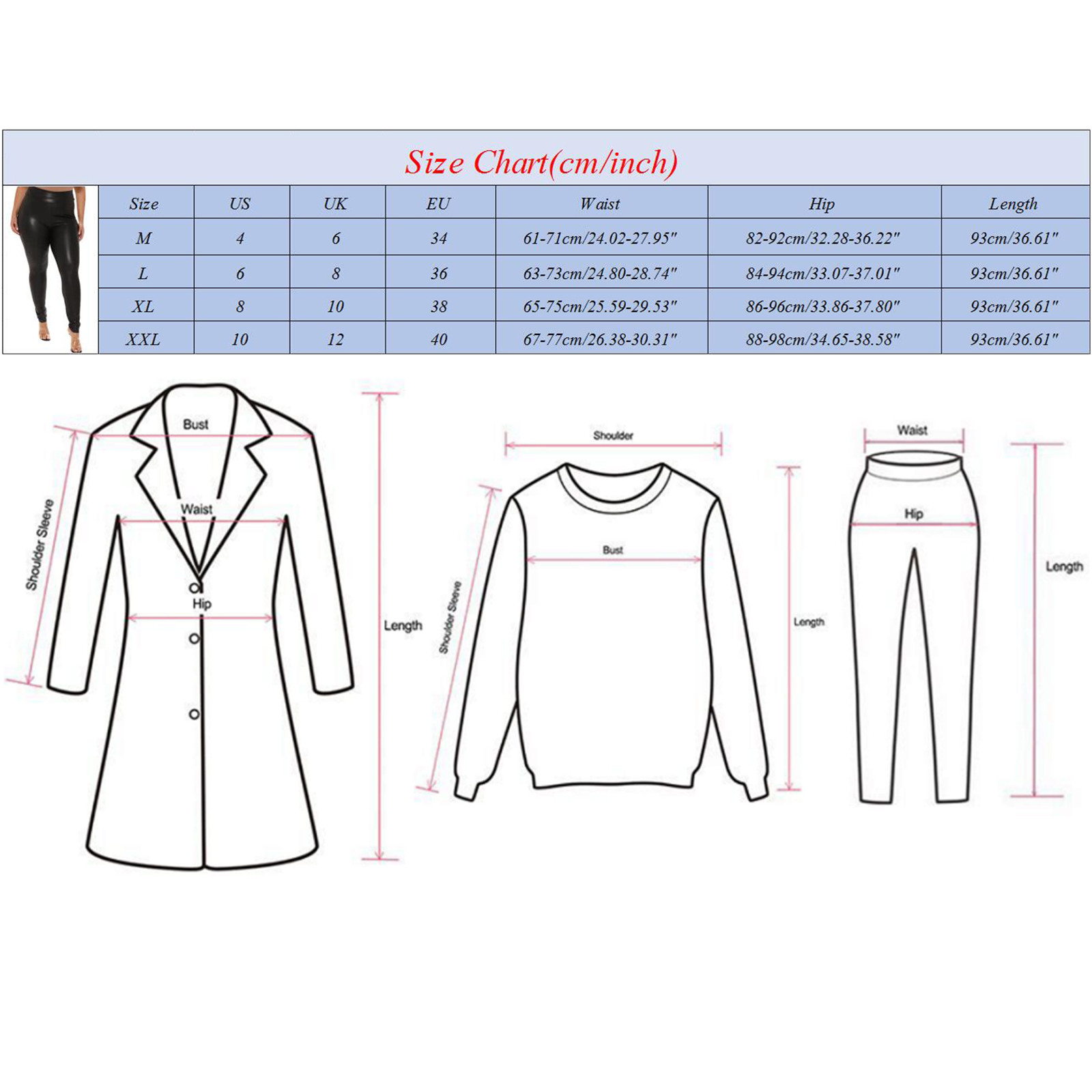 XL | 8 | 10 | 38 | 65-75 см/25,59-29,53'' | 86-96 см/33,86-37,80'' | 93 см/36,61'' |