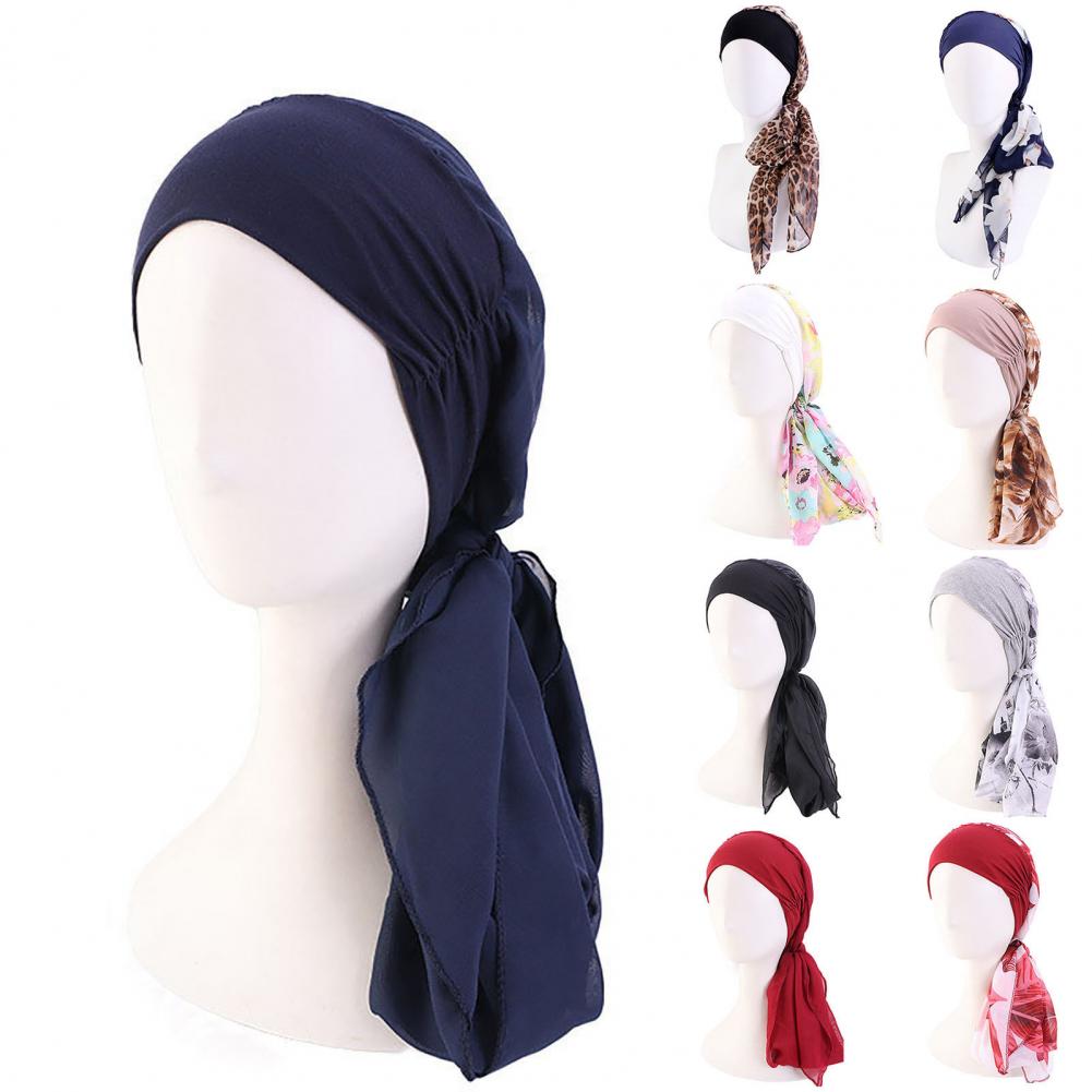 Модная шляпа для сна, эластичная Женская длинная шифоновая лента, шапочка для сна, головной платок, шапка