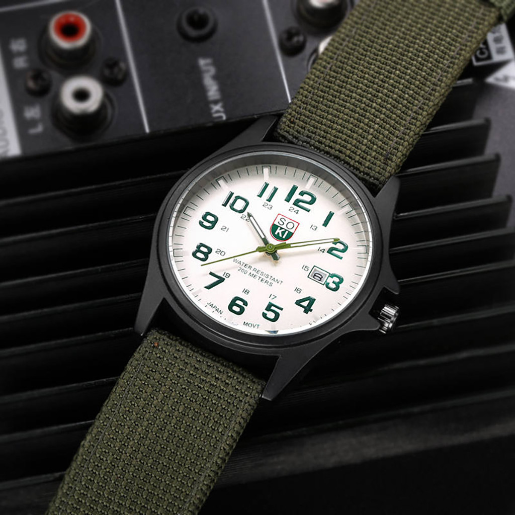 Модные мужские военные часы тканый нейлоновый ремень календарь кварцевые часы