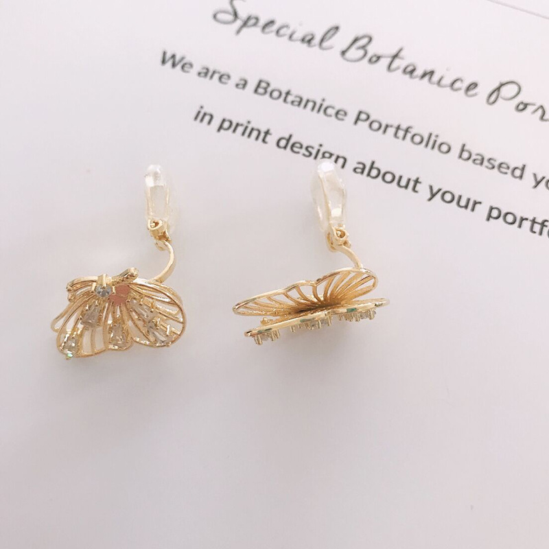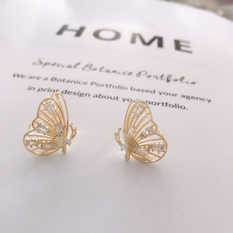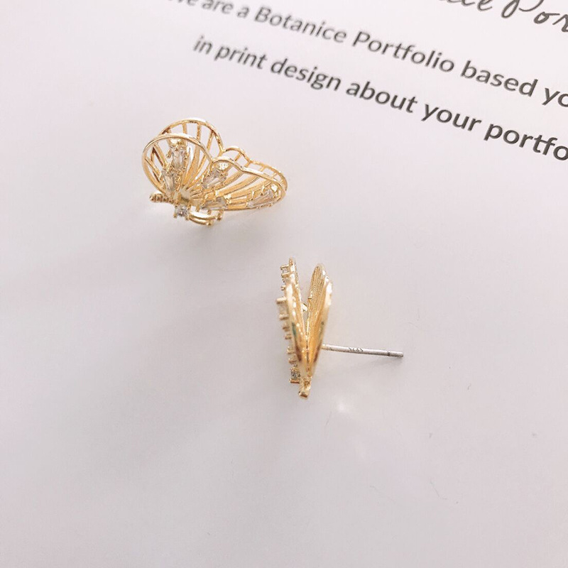 Женские серьги-гвоздики GRACE JUN, серьги-гвоздики золотистого цвета с бабочкой из мультфильма, роскошные модные серьги-манжеты из кубического циркония