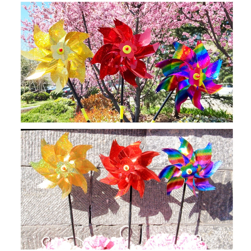 Садовые вертушки изготовлены из светоотражающего пластикового материала, блестят под солнечным светом и вращаются на ветру, что может остановить и напугать птиц, голубей, гусей, herons и другие нежелательные животные или вредители, но не повредят их.