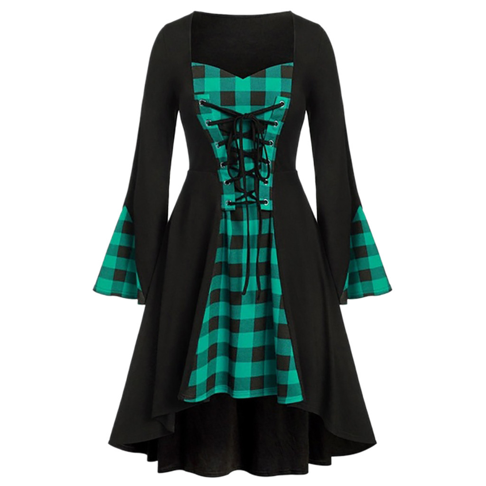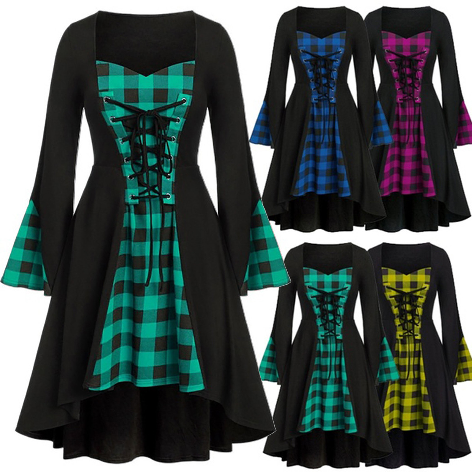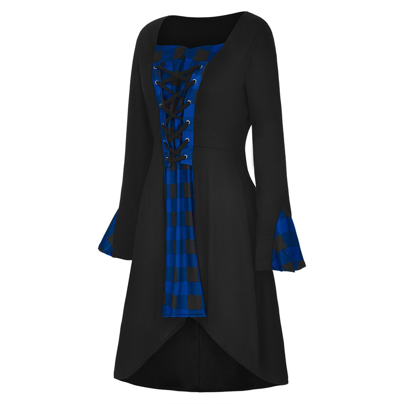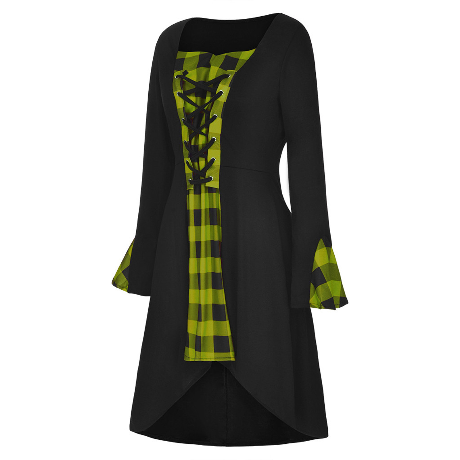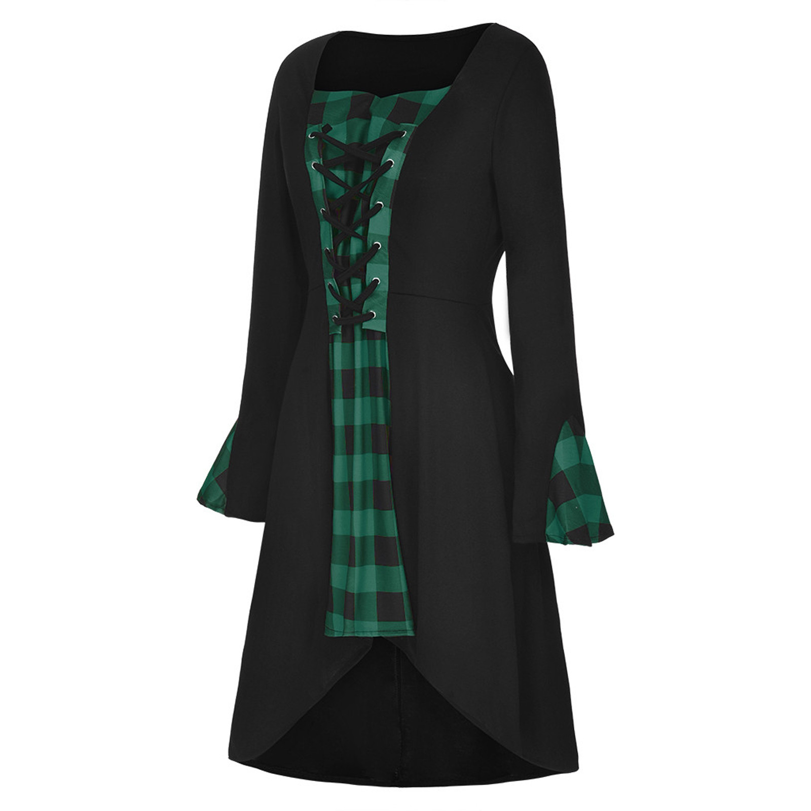 Женское платье с длинными рукавами в стиле пэчворк на шнуровке размера плюс
