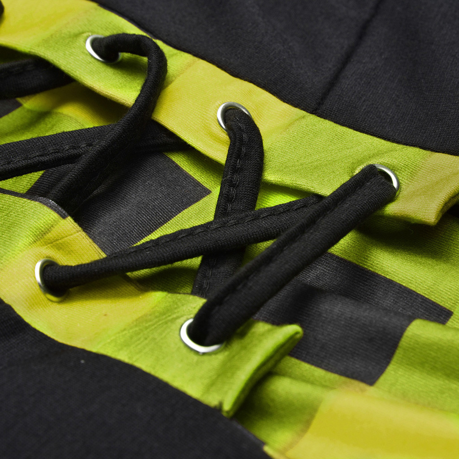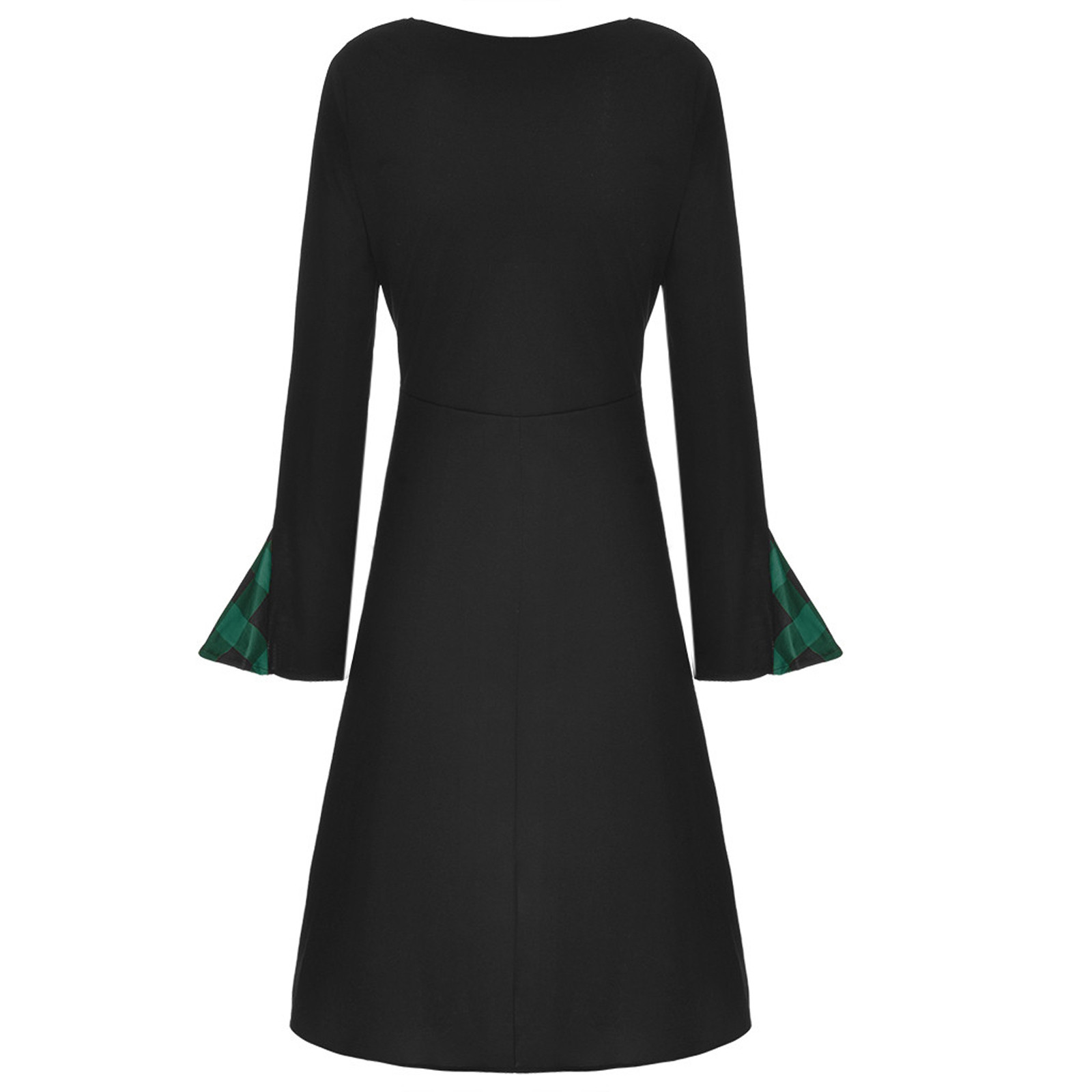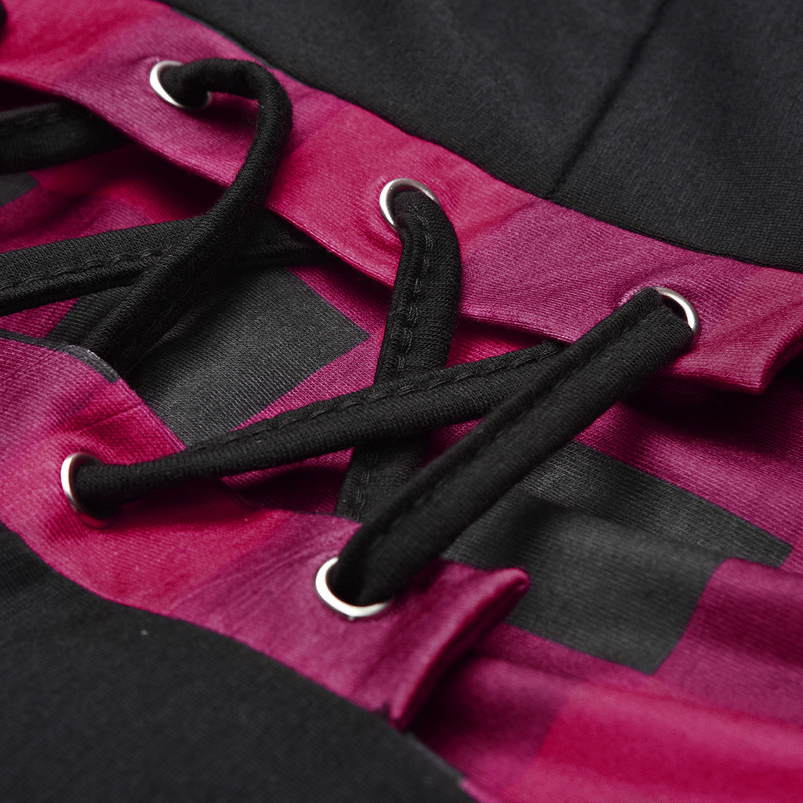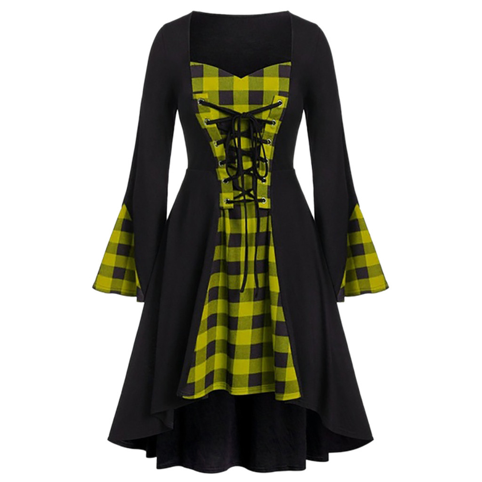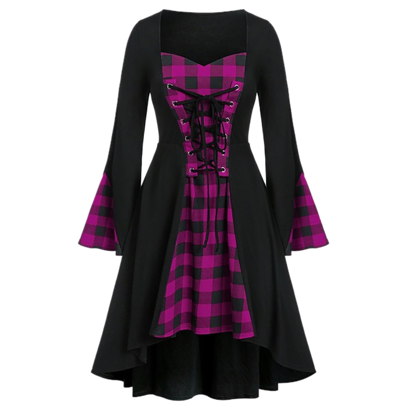 Женское платье с длинными рукавами в стиле пэчворк на шнуровке размера плюс