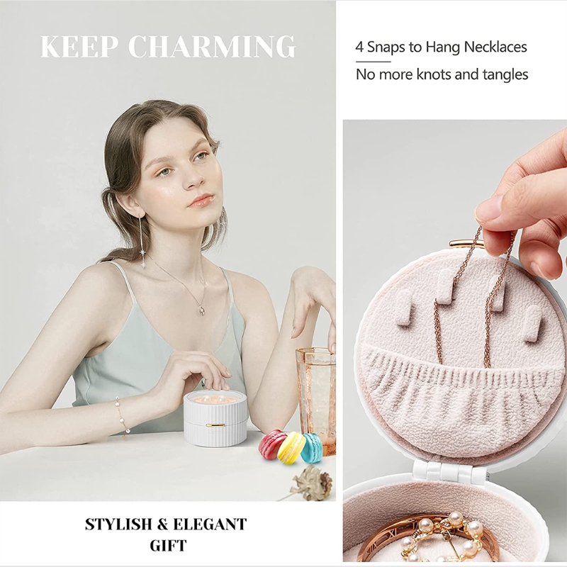 【 Слой ed для хранения 】-Двухслойный дизайн, размер кармана, но большая емкость, средний слой имеет 4 защелки и эластичный карман, чтобы повесить ожерелья, нижняя часть для браслетов, часов, И верхняя крышка имеет 7 слотов в рулонах, чтобы держать серьги, кольцо. Больше не беспокойтесь о узлах и запутывании, все ювелирные изделия хорошо организованы и легко получить доступ!