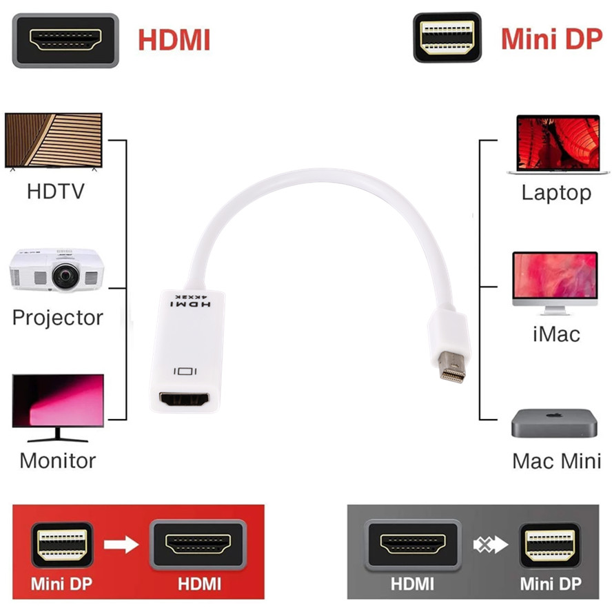 Mini DisplayPort to HDMI-совместимая конверсионная линия, может достигать только Мини-DP-HDMI-совместима с односторонним преобразованием. Поддержка разрешения видео, совместимого с HDMI, до 4K x 2K или 1080P, зависит от стиля, который вы покупаете